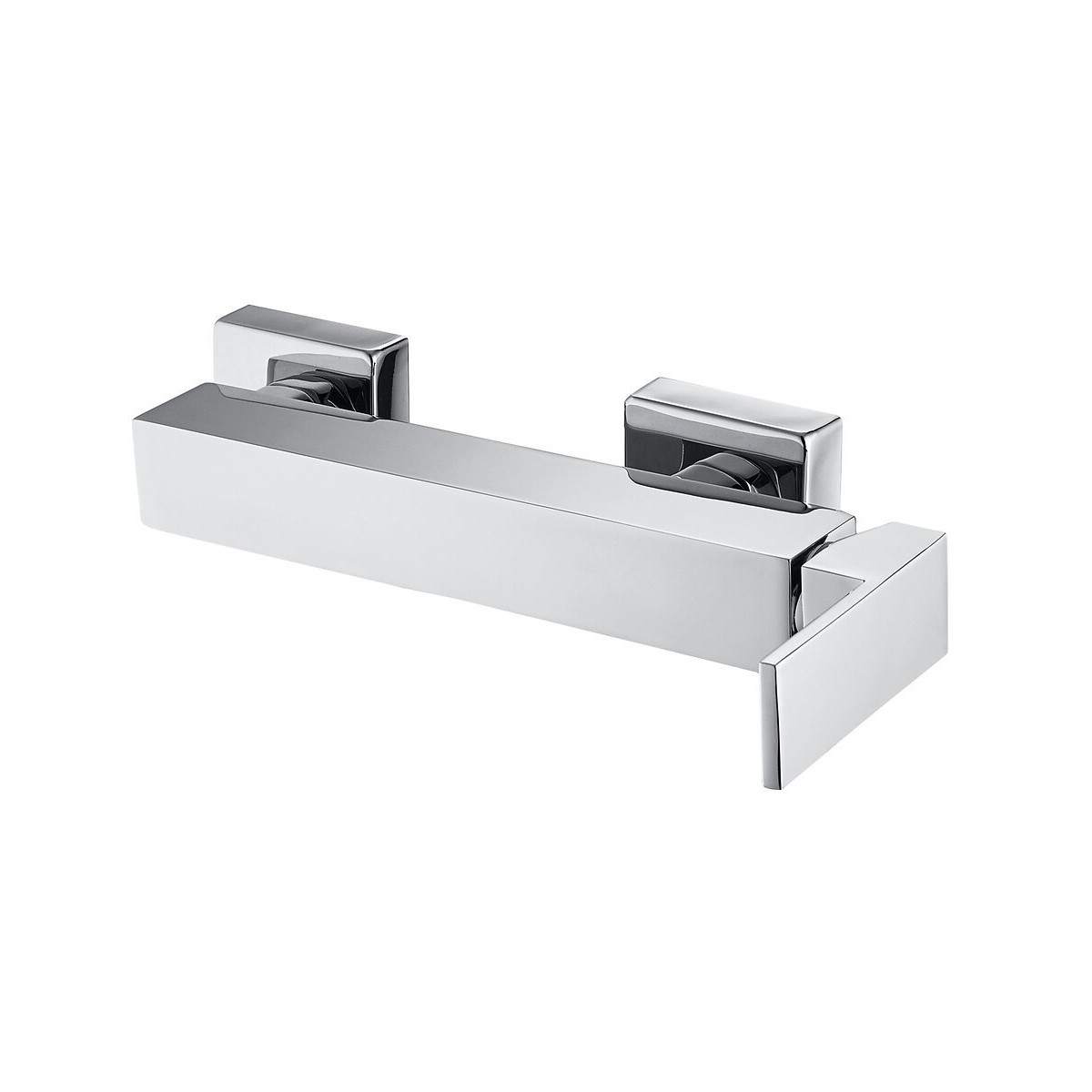 Mitigeur douche mural chromé Corps entraxe 150 mm Cartouche à disques céramique diamètre 25 mm Manette métal pleine Fourni avec raccords S et rosacesSpécifications techniques