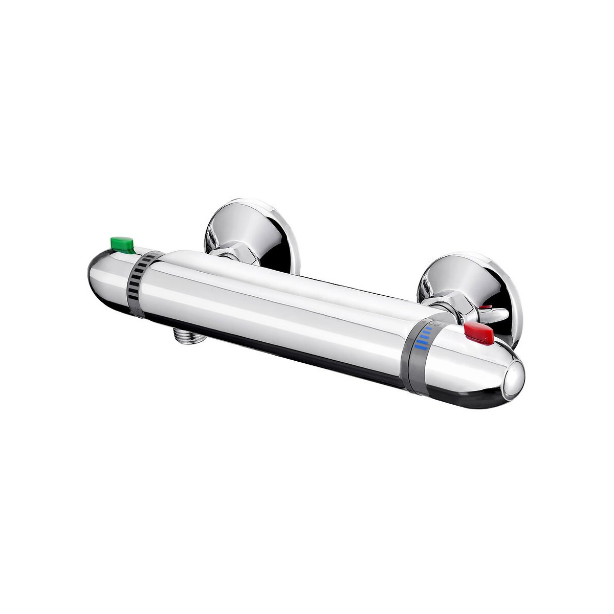 Mitigeur douche thermostatique DAO - Cartouche thermostatique + tête céramique - bouton éco-stop - Sécurité anti-brûlures - Poignée ABS - Corps : laiton - Entraxe : 150 mmSpécifications techniques
