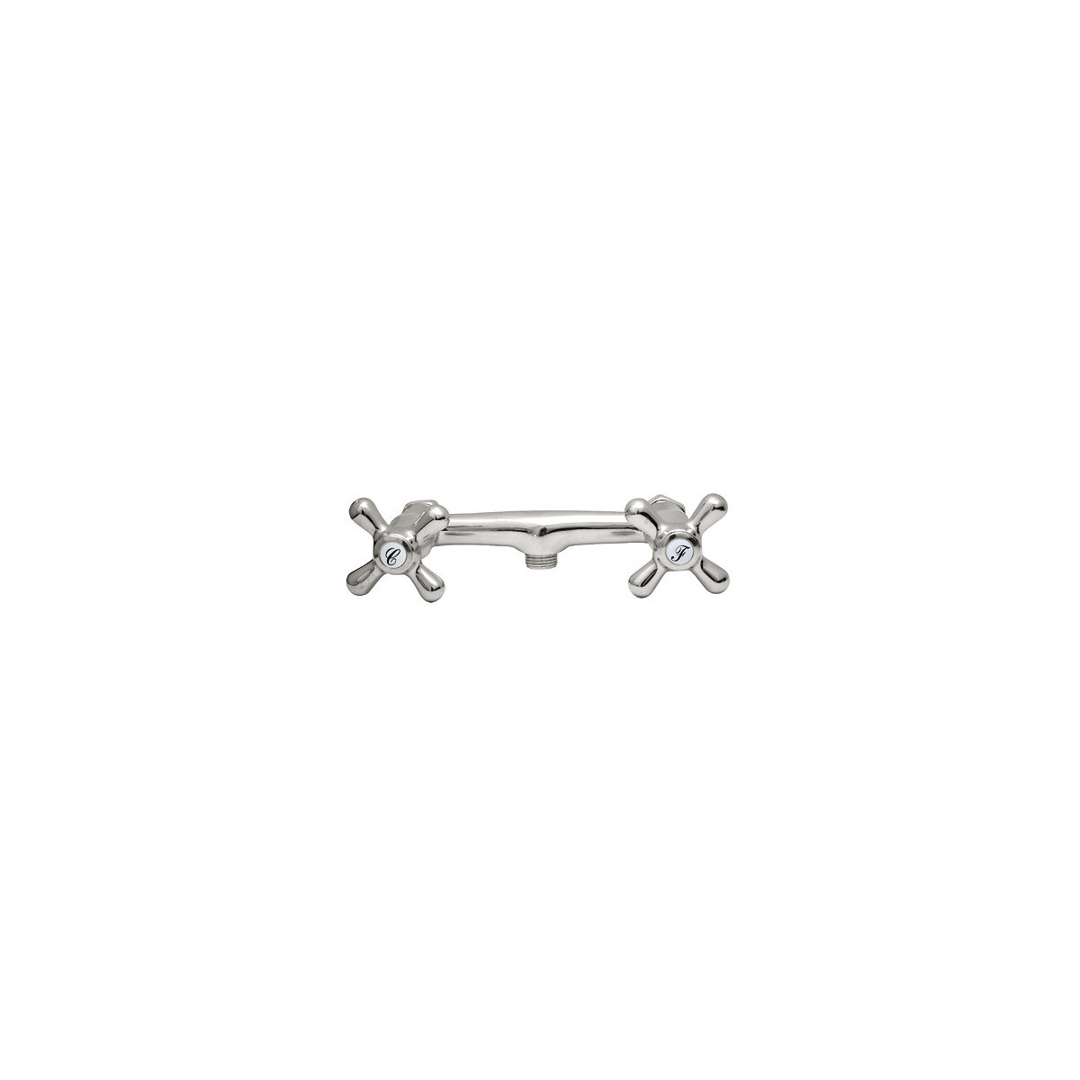 Style rétro Mécanisme : têtes céramique Poignée : métal Corps : laiton Entraxe : 150 mm.Spécifications techniques