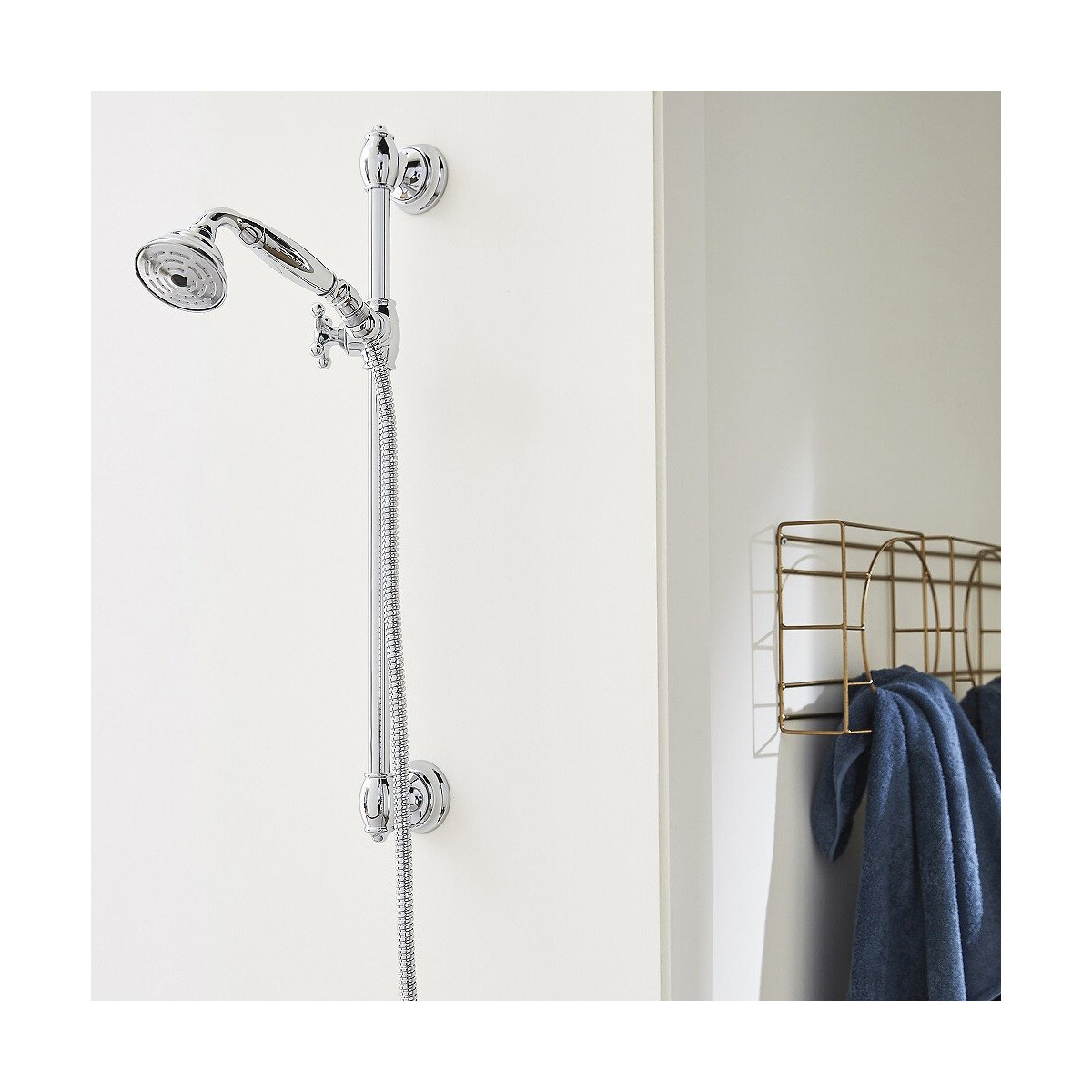 Points forts Design retro chic 100% origine France Expérience de plus de 125 ans dans l ameublement de salle de bain Rapport qualité/prix +++ Confort optimal Caractéristiques techniques Longueur barre de douche : 70 cm Finition barre de douche : laiton chromé Barre de douche avec support orientable en laiton chromé pour pommeau de douche Flexible métallique 1750 mm Flexible double agrafage : flexible souple qui ne se tord pas et ne se plie pas pour une plus grande durabilité et un confort d utilisation optimal Garantie barre de douche : 1 an Poids : 5 Kg Garantie : 1 an Références : E75090-CP (douchette + flexible) et E75099-CP (barre de douche)