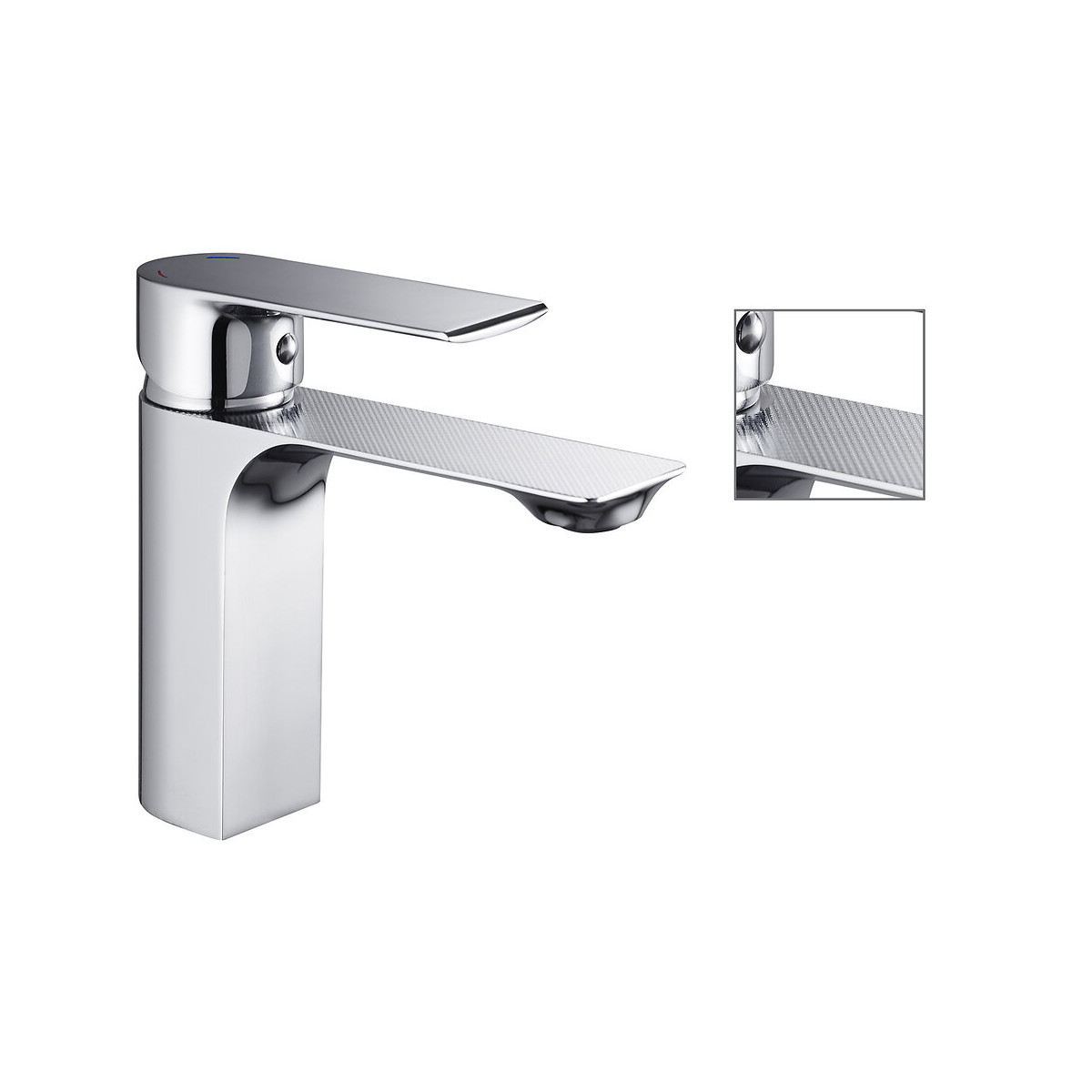 - Style moderne - Mécanisme : cartouche céramique Ø 35mm - Aérateur invisible et facile à retirer avec une clé de démontage(fournie). - Poignée : métal - Corps : laiton - Bec : fixe, décor strié - Embase : Ø 43 mm - Vidage : clic clac ABS NF - Flexible de raccordement : inox F3/8Spécifications techniques