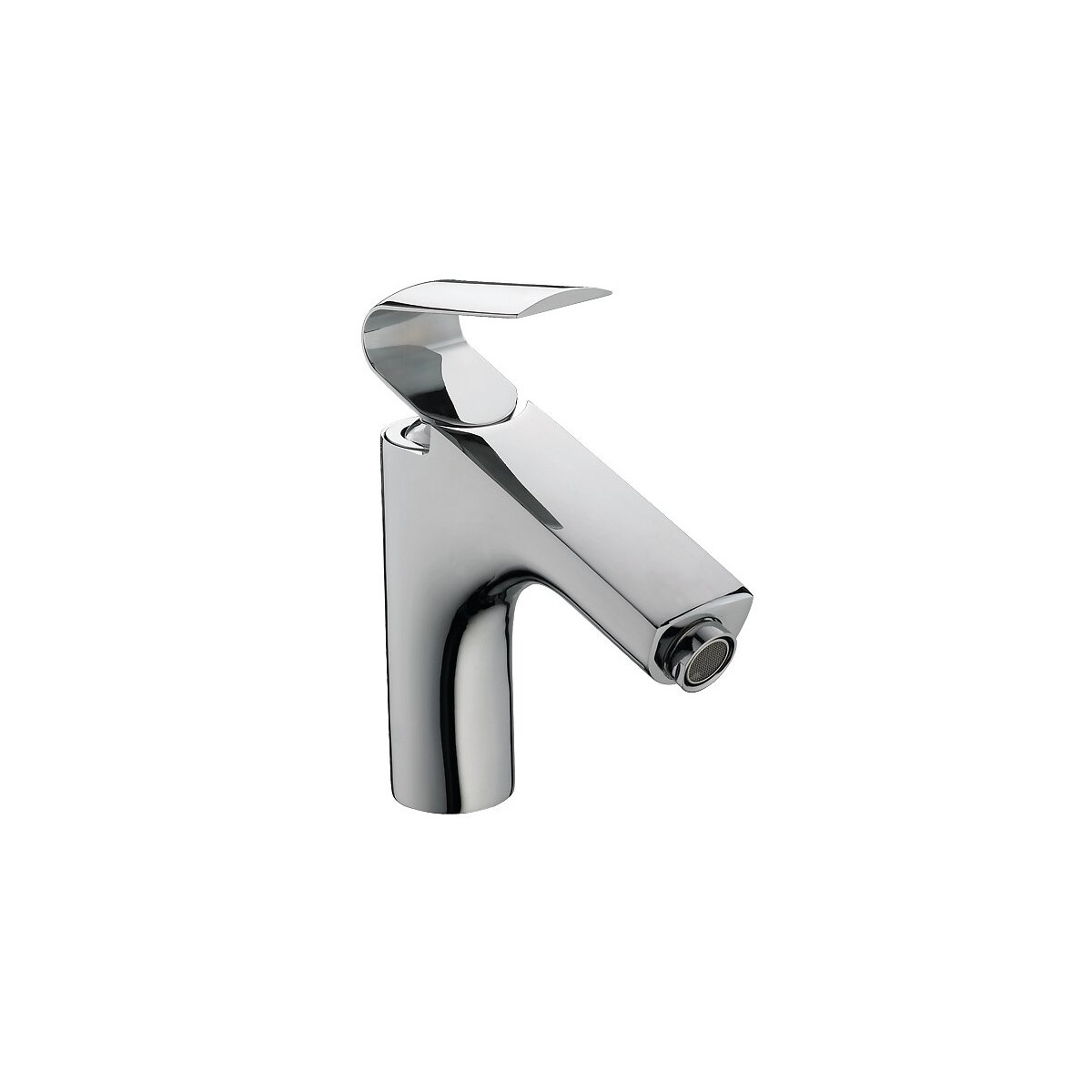 Mitigeur lavabo chromé hauteur 200mm Corps diamètre 45mm à la base Cartouche à disques-céramique de 35mm Bec incliné avec manette design Alimentation lyres tressées inox 35cm Vidage à tirette Kit de fixationSpécifications techniques