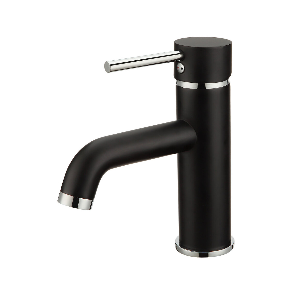 Mitigeur lavabo noir et chrome hauteur 190mm Corps diamètre 48mm avec base 55mm Cartouche à disques céramique 40mm Aérateur normal Alimentation lyres tressées inox 35cm Vidage à tirette Kit de fixationSpécifications techniques