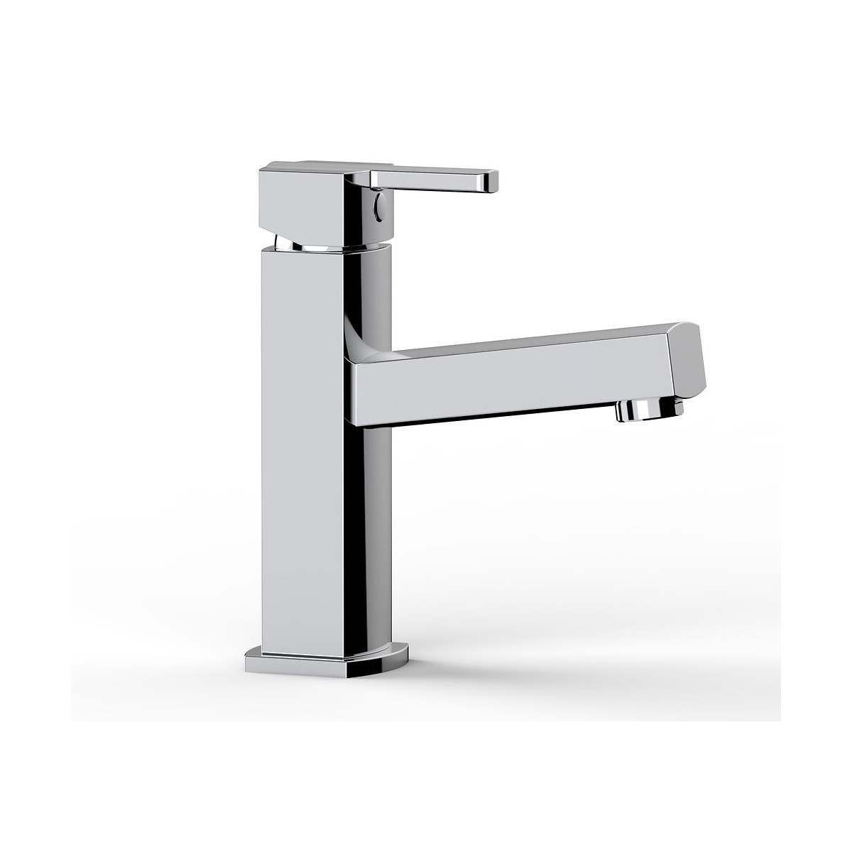 Mitigeur lave mains chromé hauteur 151mm Corps carré 34x35mm avec base 44x45mm Cartouche à disques céramique diamètre 25mm Alimentation lyres tressées inox 40cm Pas de vidage Kit de fixationSpécifications techniques