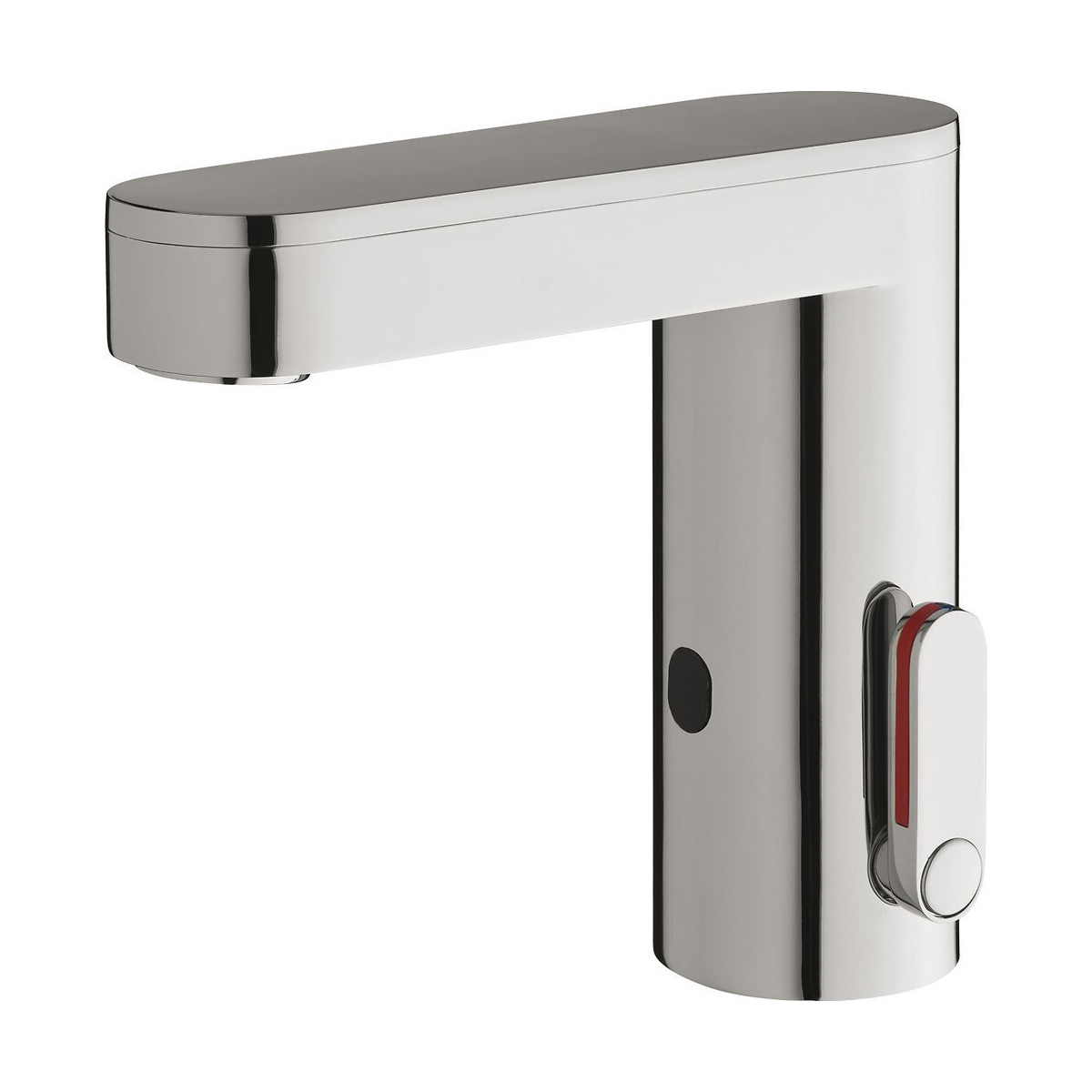 Le mitigeur lavabo infrarouge sans contact permet de faire couler l'eau sans aucun effort. Caractéristiques : Déclenchement automatique lorsque les mains sont sous le bec et arrêt automatique au retrait des mains Système anti-blocage interdisant l?écoulement continu de plus de 30 secondes Sélection de la température par poignée latérale Aérateur anti-calcaire Fonctionne avec une pile Lithium 6 V (fournie, montée) Corps : laiton Bec : fixe Flexibles de raccordement : inox F 3/8 (12x17)