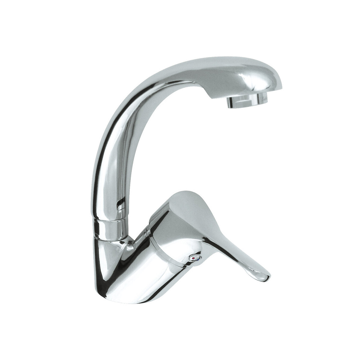 Mitigeur lavabo Edinburgh courbe chromé. Style classique. Mécanisme : cartouche en céramique Diamètre 40 mm. Économie d’eau : butée éco-stop. Aérateur réducteur de débit. Poignée en métal. Corps en laiton. Bec mobile : fondu mobile. Vidage : tirette + bonde plastique. Flexibles de raccordement : inox F 3/8. Dimension embase : Diamètre 47 mm. Dimensions : Hauteur 182 mm x 130 mm x Saillie 158 mm.