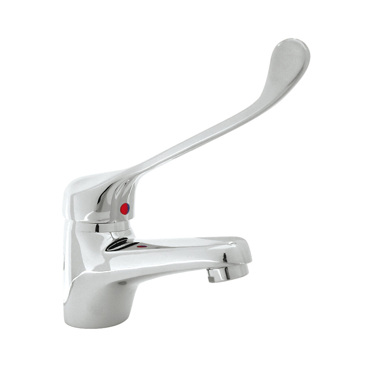 Mécanisme : cartouche céramique diamètre 40 mm Aérateur 15 L/mn Poignée : métal allongée (pour une ouverture et fermeture facilitée) Idéal pour les personnes à mobilité réduite Corps : laiton Bec : fixe Embase : diamètre 47 mm Vidage : tirette + bonde plastiqueEcrou de serrage : diamètre 11 mm Flexibles de raccordement : inox F 3/8 (12x17) certifié CSTBat.Spécifications techniques
