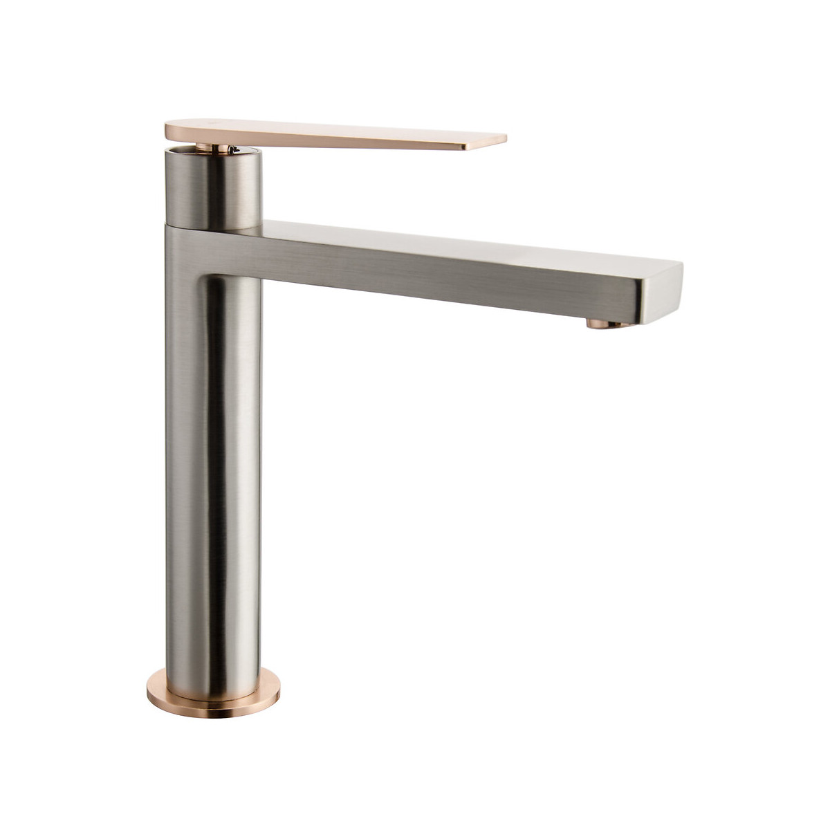 Mitigeur lavabo hauteur 231.5mm Corps diamètre 38mm avec base 55mm Cartouche à disques céramique 25mm Aérateur caché Alimentation lyres tressées inox 35cm Vidage à tirette Kit de fixationSpécifications techniques