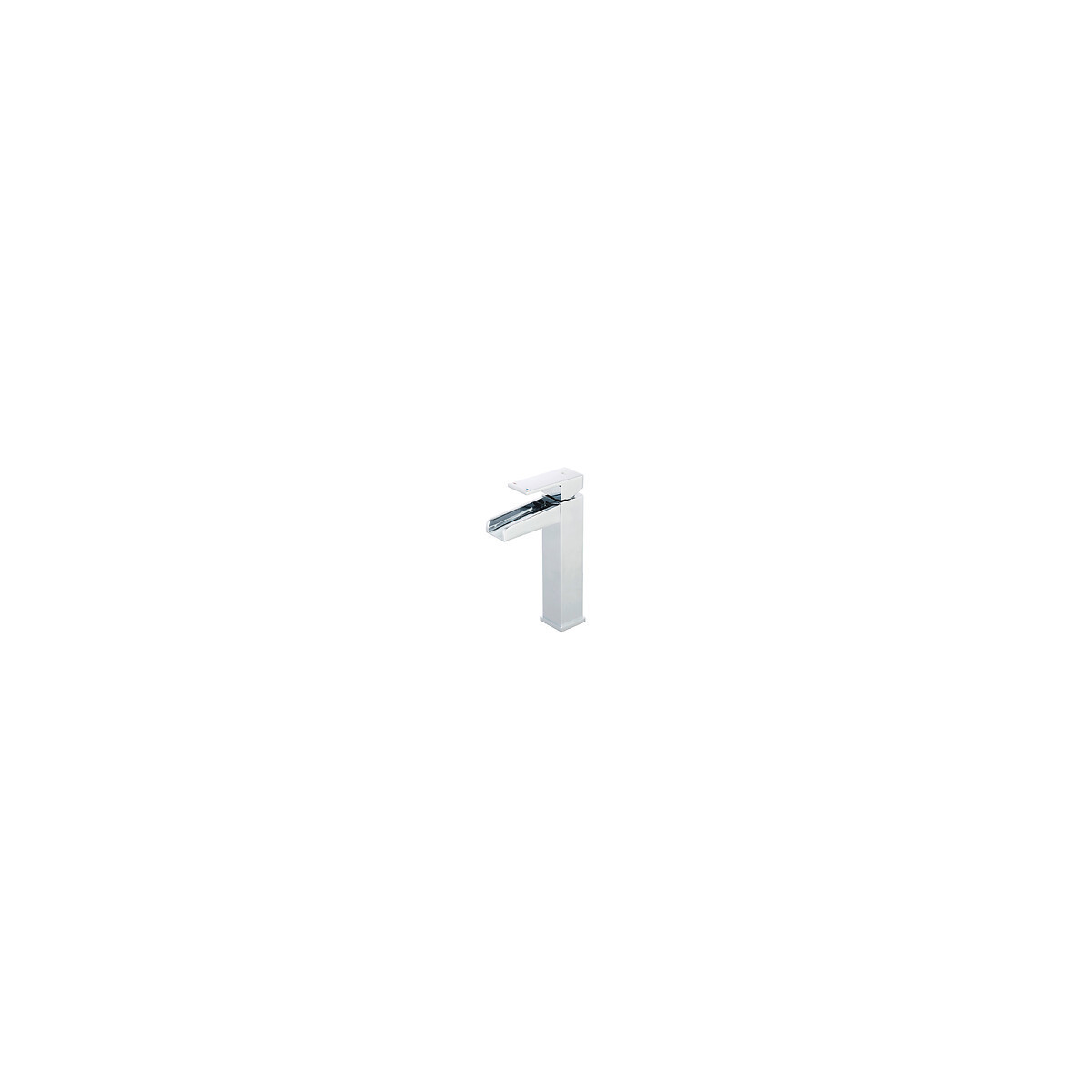 Mitigeur lavabo cascade chromé hauteur 220mm Corps carré 40x40mm avec base 45x45mm Cartouche à disques-céramique de 25mm Bec cascade effet chute d'eau long 120mm Alimentation lyres tressées inox 35cm Vidage à tirette Kit de fixationSpécifications techniques