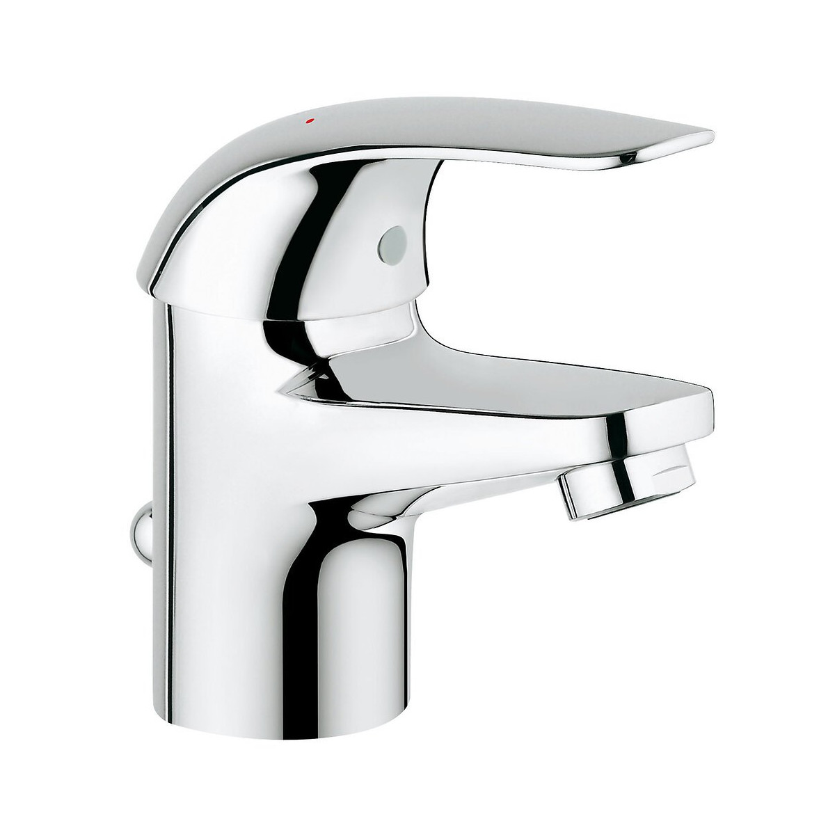 Mitigeur Start Eco GROHE monocommande 1/2" Taille S pour lavabo avec monotrou sur plage et levier de commande métallique. Caractéristiques : Technologie de cartouches GROHE SilkMove® pour une manipulation en douceur Cartouche en céramique 35 mm Facile à nettoyer grâce au revêtement chromé GROHE StarLight® Limiteur de débit ajustable Mousseur Tirette et garniture de vidage 1 1/4" Flexibles de raccordement souples, sertis d’usine Installation rapide grâce à GROHE QuickFix®