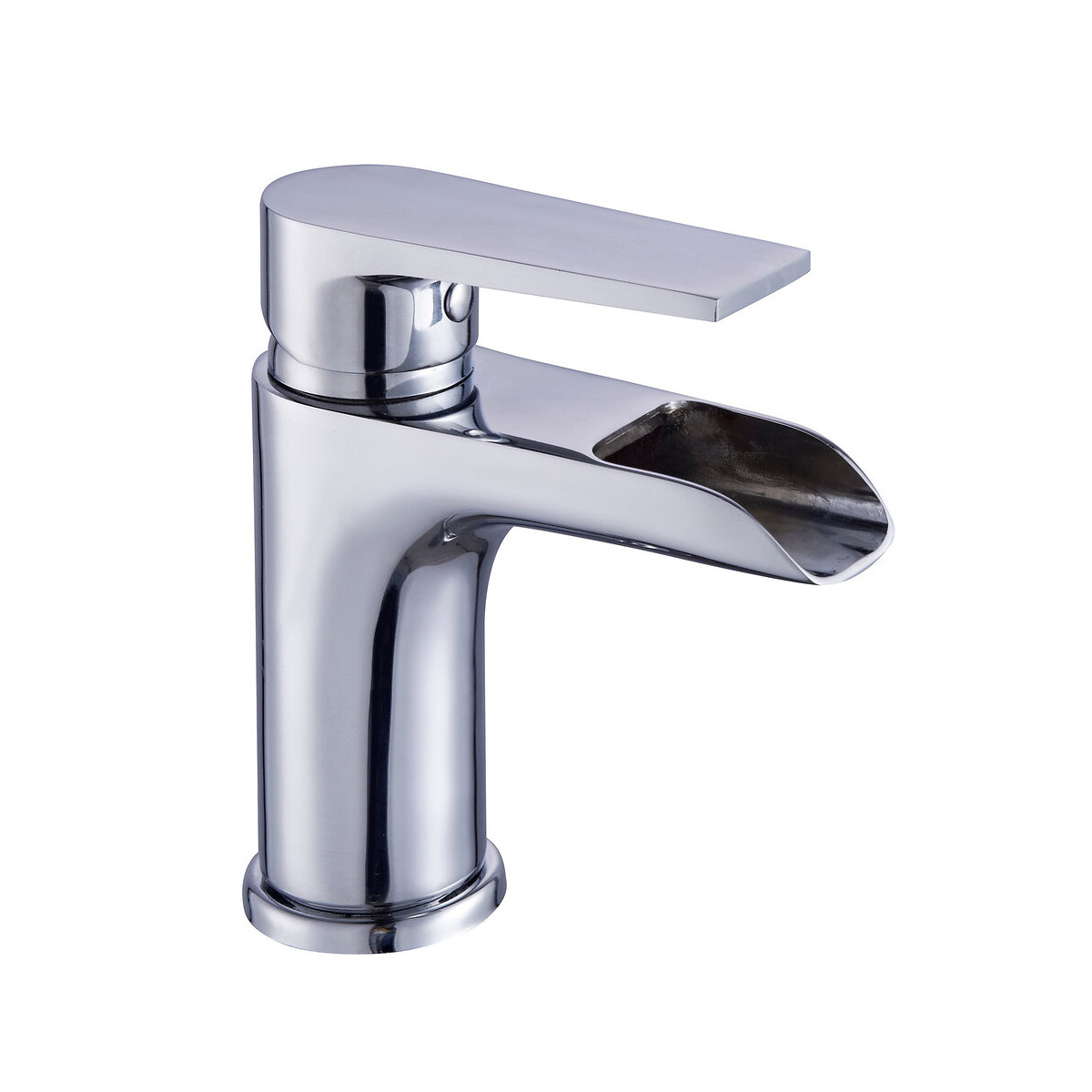 Mitigeur lavabo chromé hauteur 145mm Base diamètre 46mm Cartouche à disques céramique de 35mm Bec cascade Alimentation lyres tressées inox 35cm Vidage à tirette Kit de fixationSpécifications techniques