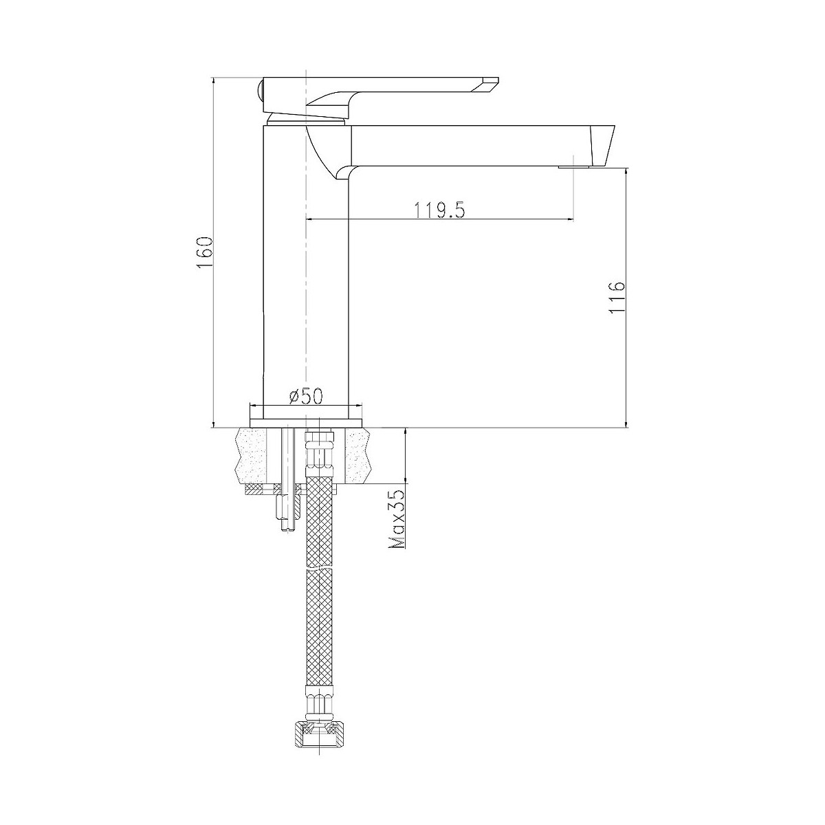 L'Addict est un mitigeur bas chromé, dont l'élégance est incontestable. Vous opterez à coup sûr pour l'Addict qui est équipé d'un aérateur anticalaire et d'un limiteur de débit pour vous aider à réduire votre facture d'eau. DESIGN: - Mitigeur lavabo. - Bec bas . - Finition chromé. - Corps rond. QUALITE: - Corps en laiton finition chromé. - Poignée en métal. - Cartouche céramique 35 mm de diamètre à limiteur de débit - Aérateur anticalcaire : limite la production de calcaire. - Economie d'eau : un cran limite l'ouverture du robinet ce qui permet de choisir de réduire le débit de 50%. - Vidage à tirette avec bonde et clapet. NORMES: - Certification ACS : Accréditation de Conformité Sanitaire. GARANTIE: - Corps garanti 5 ans. - Pièces d'usure (poignée, cartouche, flexibles...) garanties 1 an. Dimensions - Hauteur totale : 16,00 cm - Hauteur sous bec : 11,60 cm - Largeur entre la sortie d'eau et l'axe du corps du robinet : 11,95 cm - Diamètre embase : 50,00mm. Vérifiez que la longueur du bec est compatible avec votre évier (voir dessin technique) Conseil d'utilisation et d'installation - Avant de procéder au montage, nous vous conseillons de purger soigneusement les tuyauteries d'eau chaude et d'eau froide pour éviter que les saletés et résidus puissent compromettre le bon fonctionnement de la robinetterie. - Après avoir fermé l'alimentation d'eau principale, démonter l'ancienne robinetterie. - Nettoyer soigneusement le filetage des tubes d'alimentation d'eau principale. - Installer le mitigeur de cuisine dans un trou de 35 mm dans un évier ou plan de travail. Conseils d'entretien Pour garder votre robinet le plus longtemps possible, l’idéal est de le nettoyer tous les jours avec un chiffon humide non abrasif ou une microfibre, terminer en essuyant avec une microfibre ou un chiffon sec. Ne jamais utiliser de solvants, d'éponges métalliques, d’eau de javel, d'acides, de détergents puissants, de produits nettoyants chimiques agressifs ou de solutions de nettoyage à base de solvants sur le produit.Spécifications techniques