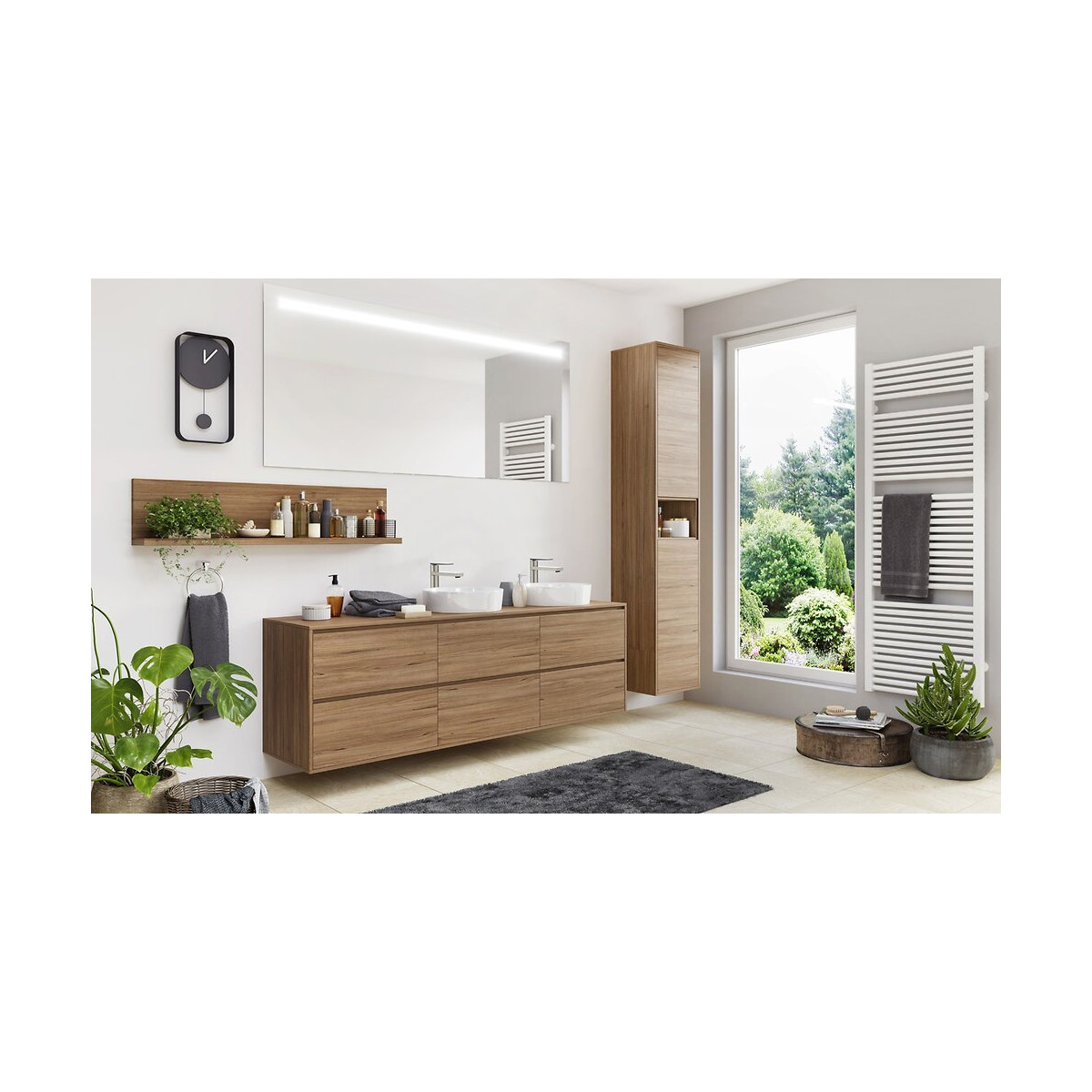 Pour une touche de couleur dans votre salle de bain, optez pour le mitigeur Allure haut. Doté de couleur inox et noir, il éblourira à coup sûr votre salle de bain. Facile à monter. DESIGN: - Mitigeur lavabo. - Bec haut. - Finition façon inox et noir. - Corps rond. QUALITE: - Corps en laiton façon inox et noir. - Poignée en métal. - Cartouche céramique 25 mm de diamètre. - Bonde à tirette avec clapet en inox fournie NORMES: - Certification ACS : Accréditation de Conformité Sanitaire. GARANTIE: - Corps garanti 5 ans. - Pièces d'usure (poignée, cartouche, flexibles...) garanties 1 an. Dimensions - Hauteur totale : 23,15 cm - Hauteur sous bec : 17,35 cm - Largeur entre la sortie d'eau et l'axe du corps du robinet : 17,00 cm - Diamètre embase : 55,00 mm. Vérifiez que la longueur du bec est compatible avec votre évier (voir dessin technique) Conseil d'utilisation et d'installation - Avant de procéder au montage, nous vous conseillons de purger soigneusement les tuyauteries d'eau chaude et d'eau froide pour éviter que les saletés et résidus puissent compromettre le bon fonctionnement de la robinetterie. - Après avoir fermé l'alimentation d'eau principale, démonter l'ancienne robinetterie. - Nettoyer soigneusement le filetage des tubes d'alimentation d'eau principale. - Installer le mitigeur de cuisine dans un trou de 35 mm dans un évier ou plan de travail. Conseils d'entretien Pour garder votre robinet le plus longtemps possible, l’idéal est de le nettoyer tous les jours avec un chiffon humide non abrasif ou une microfibre, terminer en essuyant avec une microfibre ou un chiffon sec. Ne jamais utiliser de solvants, d'éponges métalliques, d’eau de javel, d'acides, de détergents puissants, de produits nettoyants chimiques agressifs ou de solutions de nettoyage à base de solvants sur le produit.Spécifications techniques