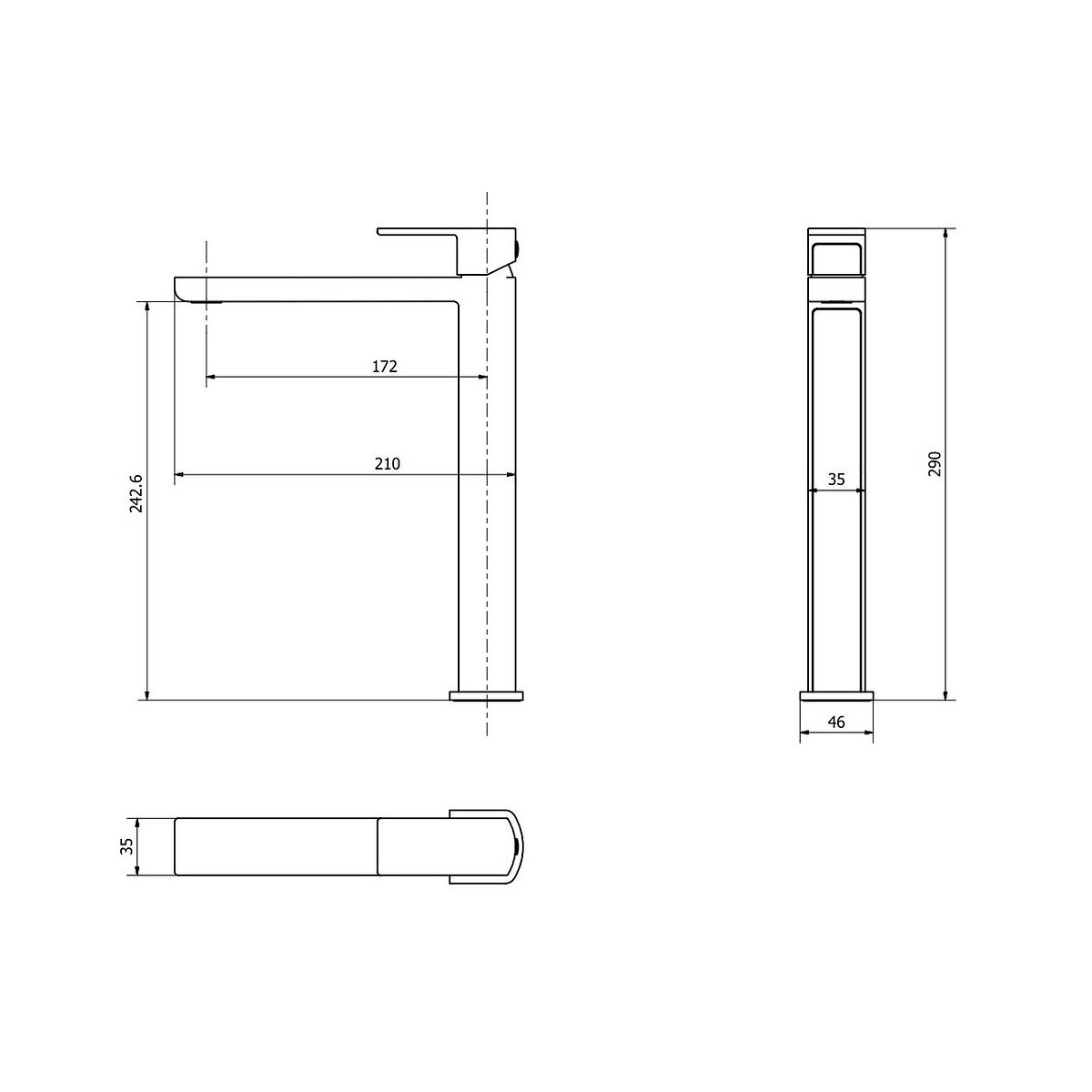 L'élégance ultime avec le mitigeur lavabo haut chromé Essemarmo et sa finition façon marbre noir. DESIGN: - Mitigeur lavabo. - Couleur chrome. - Bec haut. - Finition façon marbre noir. - Corps carré. QUALITE: - Corps en laiton doté d'une plaque effet marbre noir. - Poignée en métal chromée. - Cartouche céramique 25 mm de diamètre. - Bonde ""pop up"" (aussi appelée ""clic-clac"" ou ""push up"") est un système de vidage moderne et pratique qui permet d'ouvrir et de fermer votre vasque par une simple pression du doigt. NORMES: - Certification ACS : Accréditation de Conformité Sanitaire. GARANTIE: - Corps garanti 5 ans. - Pièces d'usure (poignée, cartouche, flexibles...) garanties 1 an. Dimensions - Hauteur totale : 29.00 cm - Hauteur sous bec : 24,26 cm - Largeur entre la sortie d'eau et l'axe du corps du robinet : 17,20 cm - Diamètre embase : 46,00mm. Vérifiez que la longueur du bec est compatible avec votre évier (voir dessin technique) Conseil d'utilisation et d'installation - Avant de procéder au montage, nous vous conseillons de purger soigneusement les tuyauteries d'eau chaude et d'eau froide pour éviter que les saletés et résidus puissent compromettre le bon fonctionnement de la robinetterie. - Après avoir fermé l'alimentation d'eau principale, démonter l'ancienne robinetterie. - Nettoyer soigneusement le filetage des tubes d'alimentation d'eau principale. - Installer le mitigeur de cuisine dans un trou de 35 mm dans un évier ou plan de travail. Conseils d'entretien Pour garder votre robinet le plus longtemps possible, l’idéal est de le nettoyer tous les jours avec un chiffon humide non abrasif ou une microfibre, terminer en essuyant avec une microfibre ou un chiffon sec. Ne jamais utiliser de solvants, d'éponges métalliques, d’eau de javel, d'acides, de détergents puissants, de produits nettoyants chimiques agressifs ou de solutions de nettoyage à base de solvants sur le produit.Spécifications techniques