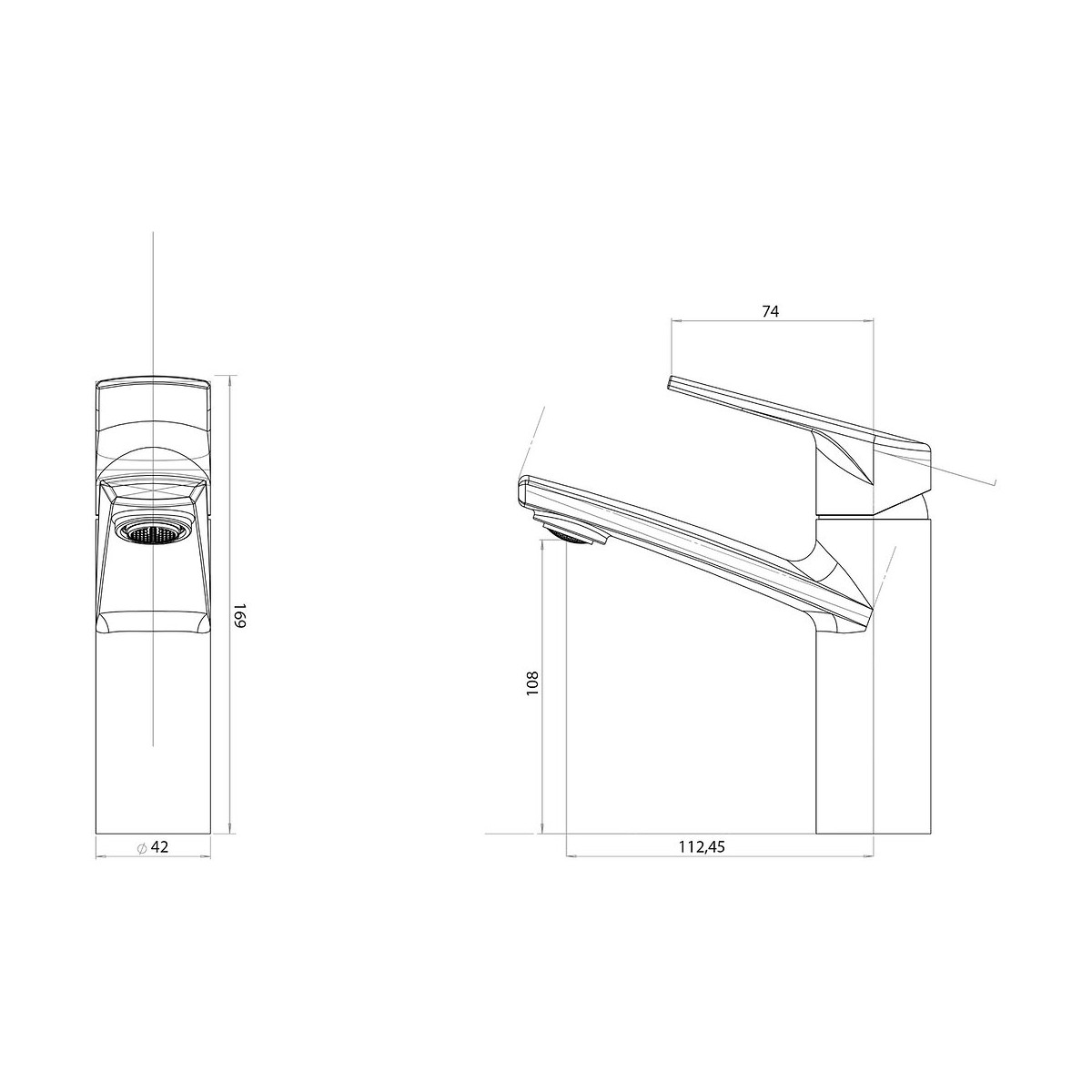 Le Sydney est un mitigeur chromé aux courbures élégantes. Il répond aux normes ACS, est très fonctionnel et s'adaptera sans problème à votre lavabo DESIGN: - Mitigeur lavabo. - Bec bas. - Finition chromé. - Corps rond. QUALITE: - Corps en laiton finition chromé. - Poignée en métal. - Cartouche céramique 35 mm de diamètre. - Aérateur anticalcaire : limite la production de calcaire. - Aérateur économie d'eau : permet de réaliser des économies sur votre consommation d'eau grâce à un mélange optimal de l'air et de l'eau. - Economie d'énergie : ouverture centrale sur eau froide évitant ainsi les appels involontaires d'eau chaude. - Vidage à tirette. NORMES: - Certification ACS : Accréditation de Conformité Sanitaire. GARANTIE: - Corps garanti 5 ans. - Pièces d'usure (poignée, cartouche, flexibles...) garanties 1 an. Dimensions - Hauteur totale : 16,90 cm - Hauteur sous bec : 10,80 cm - Largeur entre la sortie d'eau et l'axe du corps du robinet : 11,245 cm - Diamètre embase : 42,00mm. Vérifiez que la longueur du bec est compatible avec votre évier (voir dessin technique) Conseil d'utilisation et d'installation - Avant de procéder au montage, nous vous conseillons de purger soigneusement les tuyauteries d'eau chaude et d'eau froide pour éviter que les saletés et résidus puissent compromettre le bon fonctionnement de la robinetterie. - Après avoir fermé l'alimentation d'eau principale, démonter l'ancienne robinetterie. - Nettoyer soigneusement le filetage des tubes d'alimentation d'eau principale. - Installer le mitigeur de cuisine dans un trou de 35 mm dans un évier ou plan de travail. Conseils d'entretien Pour garder votre robinet le plus longtemps possible, l’idéal est de le nettoyer tous les jours avec un chiffon humide non abrasif ou une microfibre, terminer en essuyant avec une microfibre ou un chiffon sec. Ne jamais utiliser de solvants, d'éponges métalliques, d’eau de javel, d'acides, de détergents puissants, de produits nettoyants chimiques agressifs ou de solutions de nettoyage à base de solvants sur le produit.Spécifications techniques