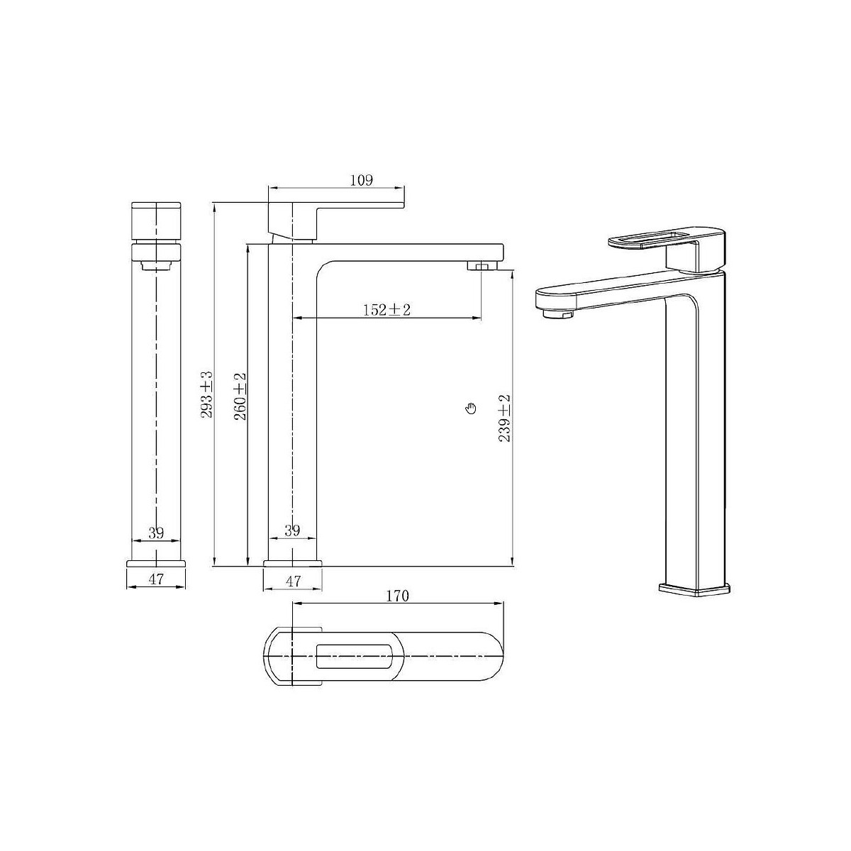 Ce robinet mitigeur haut chromé ""Vito"" illuminera votre salle de bain. Très design et élégant il donnera ce petit ""plus"", avec son corps en forme carrond différent. DESIGN: - Mitigeur évier. - Bec haut. - Finition chromé. - Corps carré. QUALITE: - Corps en laiton finition chromé. - Poignée en metal. - Cartouche 25 mm de diamètre. - Aérateur anticalcaire : Oui (limite la production de calcaire). - Kit de fixation inclus. - Alimentation à l'eau : Lyres tréssées inox 35cm inclus. NORMES: - Certification ACS : Accréditation de Conformité Sanitaire. GARANTIE: - Corps garanti 5 ans. - Pièces d'usure (poignée, cartouche, flexibles...) garanties 1 an. Dimensions - Hauteur totale : 33,0 cm - Hauteur sous bec : 27,2 cm - Largeur entre la sortie d'eau et l'axe du corps du robinet : 22,80 cm - Diamètre embase : 50mm. Vérifiez que la longueur du bec est compatible avec votre évier (voir dessin technique) Conseil d'utilisation et d'installation - Avant de procéder au montage, nous vous conseillons de purger soigneusement les tuyauteries d'eau chaude et d'eau froide pour éviter que les saletés et résidus puissent compromettre le bon fonctionnement de la robinetterie. - Après avoir fermé l'alimentation d'eau principale, démonter l'ancienne robinetterie. - Nettoyer soigneusement le filetage des tubes d'alimentation d'eau principale. - Installer le mitigeur de cuisine dans un trou de 35 mm dans un évier ou plan de travail. Conseils d'entretien Pour garder votre robinet le plus longtemps possible, l’idéal est de le nettoyer tous les jours avec un chiffon humide non abrasif ou une microfibre, terminer en essuyant avec une microfibre ou un chiffon sec. Ne jamais utiliser de solvants, d'éponges métalliques, d’eau de javel, d'acides, de détergents puissants, de produits nettoyants chimiques agressifs ou de solutions de nettoyage à base de solvants sur le produit.Spécifications techniques