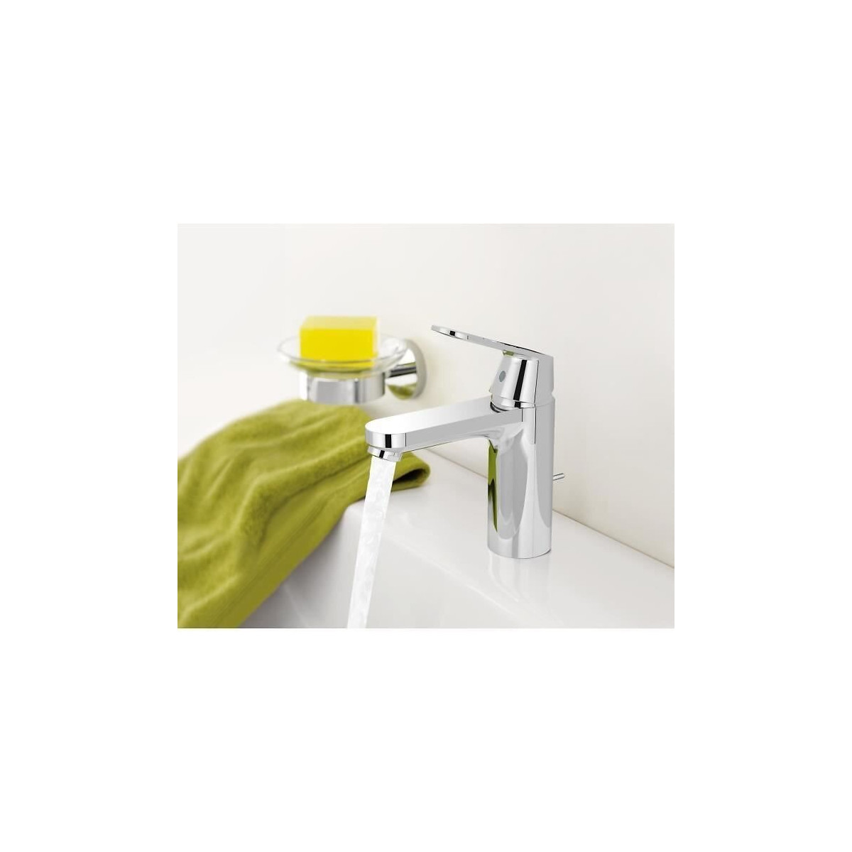Mitigeur de lavabo moderne Grohe 23325000 Mitigeur monocommande 1/2' Lavabo Mitigeur de lavabo moderne Grohe Monotrou sur plage Bec Medium Chrome éclatant et durable Cartouche en céramique 35 mm économie d'eau Installation rapide Levier de commande métallique Tirette et garniture de vidage 1 1/4' Le vidage fournit convient aux vasques équipés d'un trop plein. Flexibles de raccordement souples, sertis d'usine Qualité et fabrication allemande PLANETEBAIN.COM VOUS PRÉCONISE: Avant de procéder au montage, nous vous conseillons de purger soigneusement les tuyauteries d'eau chaude et d'eau froide pour éviter que saletés et résidus puissent compromettre la marche de la robinetterie. Nettoyer soigneusement le filetage des tubes d'alimentation d'eau principale. Le mitigeur est utilisable pour des pressions d'alimentation en eau de 1 bar (min) à 5 bars (max). En cas de pression supérieure, nous vous conseillons d'installer un limiteur de pression. Attention : ne pas utiliser de produit abrasif ou tout autre produit acide. Nettoyer votre mitigeur avec de l'eau savonneuse, puis rincer avec une éponge ou un chiffon doux. En cas de calcaire : nettoyer avec de l'eau vinaigrée (vinaigre blanc).