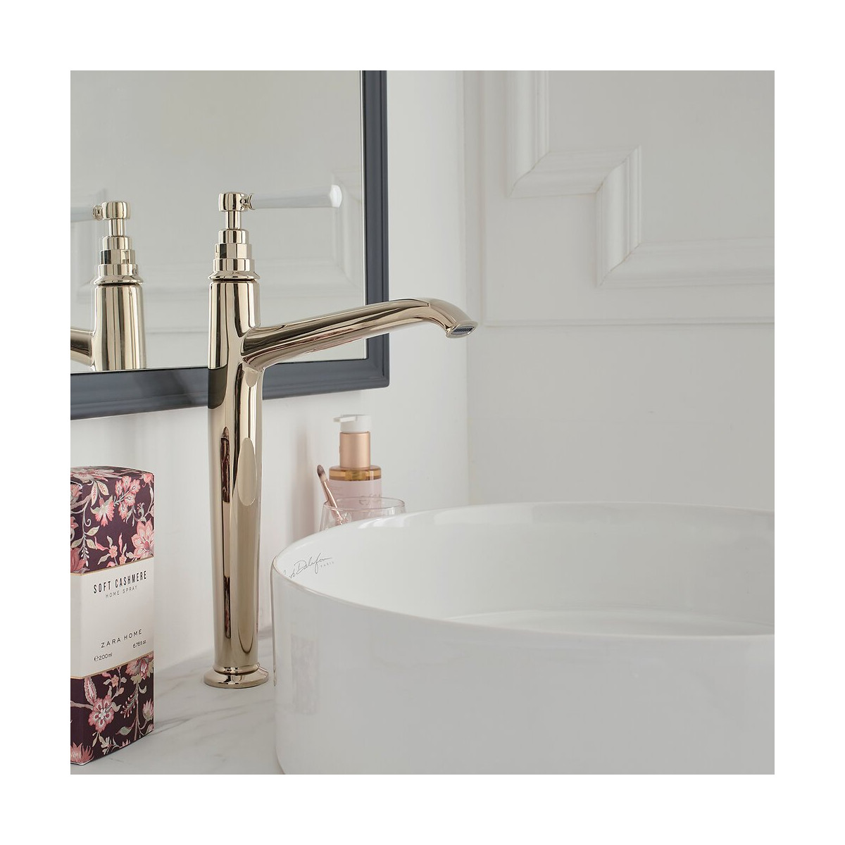 Points forts Le charme de l’ancien : Des lignes classiques, un choix de matériaux nobles et un esprit rétro assumé Hauteur confort : Hauteur sous bec permettant une bonne compatibilité avec la plupart des vasques à poser Finition Or beige riche et éclatante qui sublime l espace grâce à ses reflets chauds et son côté luxueux Jet d’eau scintillant : Un jet torsadé au rendu spectaculaire Caractéristiques du mitigeur lavabo - modèle haut - Cleo Jacob Delafon Type d’installation : Mitigeur 1 trou Mécanisme : Cartouche à disques céramique Débit (L/mn sous 3 bars) : 5 l/mn Raccords : Avec flexibles d alimentation Kit de fixation avec queue filetée pour une installation simplifiée Garantie mécanisme : 5 ans Garantie finition chromée : 10 ans Garantie finition or beige : 25 ans Hauteur max. : 378 mm Hauteur mitigeur : 352 mm Hauteur sous bec : 253 mm Saillie du bec : 175 mm 2 coloris disponibles Ref E24309-CP : Chrome Ref E24309-BGG : Or beige
