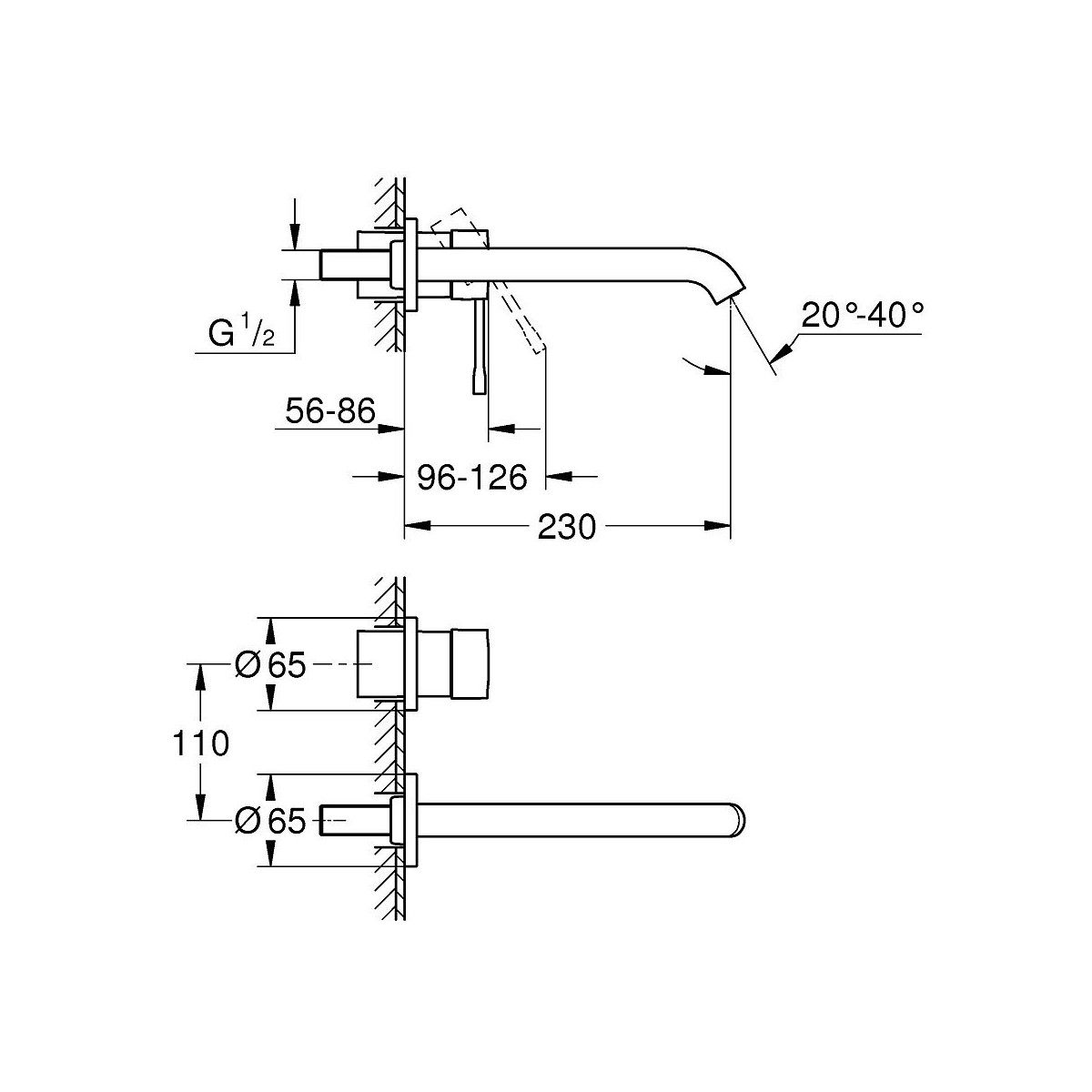 Caractéristiques du mitigeur monocommande 2 trous lavabo Taille L avec corps encastré Ce produit comprend Mitigeur monocommande 2 trous lavabo Taille L Essence Corps encastré pour mitigeur monocommande 1/2 Mitigeur monocommande 2 trous lavabo Taille L Essence Montage mural apparent Rosace en métal Levier de commande métallique GROHE EcoJoy économie d’eau Mousseur 5 l/min GROHE AquaGuide mousseur ajustable Entraxe 110 mm Saillie 230 mm Corps encastré pour mitigeur monocommande 1/2 Montage 2 trous Montage encastré Livré sans façade GROHE SilkMove Cartouche en céramique 35 mm avec limiteur de température Installation avec bec à gauche ou à droite Corps Laiton Gabarit d encastrement Finition disponibles Mitigeur Grohe ESSENCE 2 trous lavabo taille L saillie 230 Chromé - Ref : 19967001 Mitigeur Grohe ESSENCE 2 trous lavabo taille L saillie 230 Supersteel - Ref : 19967DC1 Mitigeur Grohe ESSENCE 2 trous lavabo taille L saillie 230 Nickel - Ref : 19967BE1 Mitigeur Grohe ESSENCE 2 trous lavabo taille L saillie 230 Nickel brossé - Ref : 19967EN1 Mitigeur Grohe ESSENCE 2 trous lavabo taille L saillie 230 Cool Sunrise - Ref : 19967GL1 Mitigeur Grohe ESSENCE 2 trous lavabo taille L saillie 230 Cool Sunrise brossé - Ref : 19967GN1 Mitigeur Grohe ESSENCE 2 trous lavabo taille L saillie 230 Warm Sunset - Ref : 19967DA1 Mitigeur Grohe ESSENCE 2 trous lavabo taille L saillie 230 Warm Sunset brossé - Ref : 19967DL1 Mitigeur Grohe ESSENCE 2 trous lavabo taille L saillie 230 Hard Graphite - Ref : 19967A01 Mitigeur Grohe ESSENCE 2 trous lavabo taille L saillie 230 Hard Graphite brossé - Ref : 19967AL1