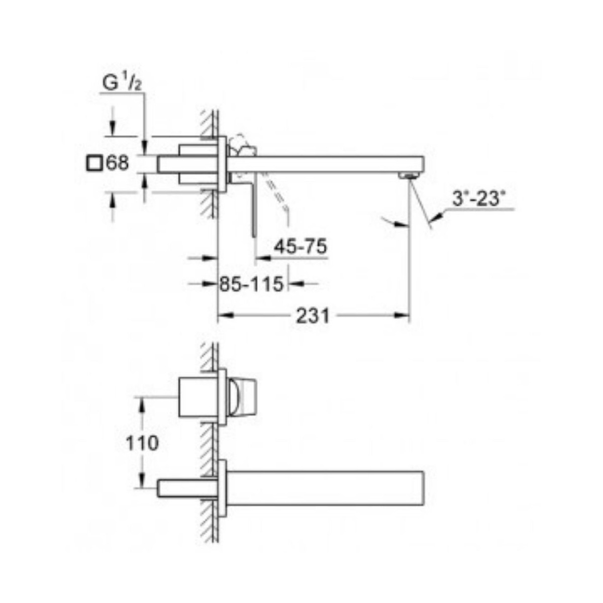 Points forts Mousseur ajustable Extrémité du bec réglable pour ajuster l écoulement d eau Résiste au calcaire et aux rayures Brillance allongée qui augmente sa durée de vie Economies d eau : consommation réduite jusqu à 50% sans sacrifice en terme de performance Mitigeur élégant Garantie 5 ans Caractéristiques techniques Type d installation : mural Finition de haute qualité: Technologie AquaGuide : mousseur 5L/mn Longueur du bec (saillie) : 231 mm Entraxe : 110 mm Coprs encastré non fourni Plaque de finition et levier de commande : métal Référence : 23447000