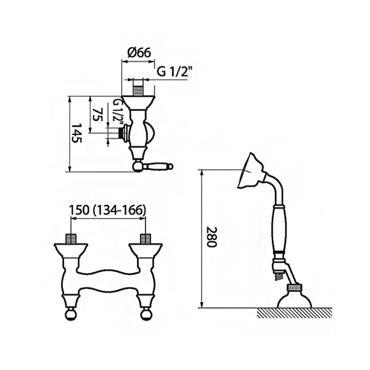 L'ensemble douchette mélangeur vintage pour votre douche. Optez pour le Dorian un mélangeur retro doté de sa douchette et son support. DESIGN : - Mitigeur douche mural - Finition chromé - Corps laiton entraxe 150 mm. - Doté d'une douchette et son support. QUALITE: - Corps en laiton finition chromé. - Poignées en métal et embout blanc céramique. - Douchette chromée monojet. - Support douchette chromé fourni. - Raccords laiton et rosaces fournis. COMPATIBILITE : - Compatible avec toute chaudière. NORMES : - Certification ACS : Accréditation de Conformité Sanitaire. GARANTIE : Corps garanti 5 ans. Pièces d'usure (inverseur, cartouche, flexibles...) garanties 1 an. Conseil d'utilisation et d'installation - Avant de procéder au montage, nous vous conseillons de purger soigneusement les tuyauteries d'eau chaude et d'eau froide pour éviter que les saletés et résidus puissent compromettre le bon fonctionnement de la robinetterie. - Après avoir fermé l'alimentation d'eau principale, démonter l'ancienne robinetterie. - Nettoyer soigneusement le filetage des tubes d'alimentation d'eau principale. - Installer le mitigeur sur deux raccords excentrés (les écrous ne doivent pas toucher les rosaces) Conseils d'entretien : Afin de garder votre colonne de douche propre et brillante, nous vous conseillons d’essuyer votre colonne à l’aide d’une microfibre immédiatement après usage. Vous pouvez également utiliser notre nettoyant détartrant désinfectant désodorisant accompagné d’une microfibre pour empêcher les dépôts de tartre. Il est déconseillé d’utiliser des produits abrasifs.Spécifications techniques
