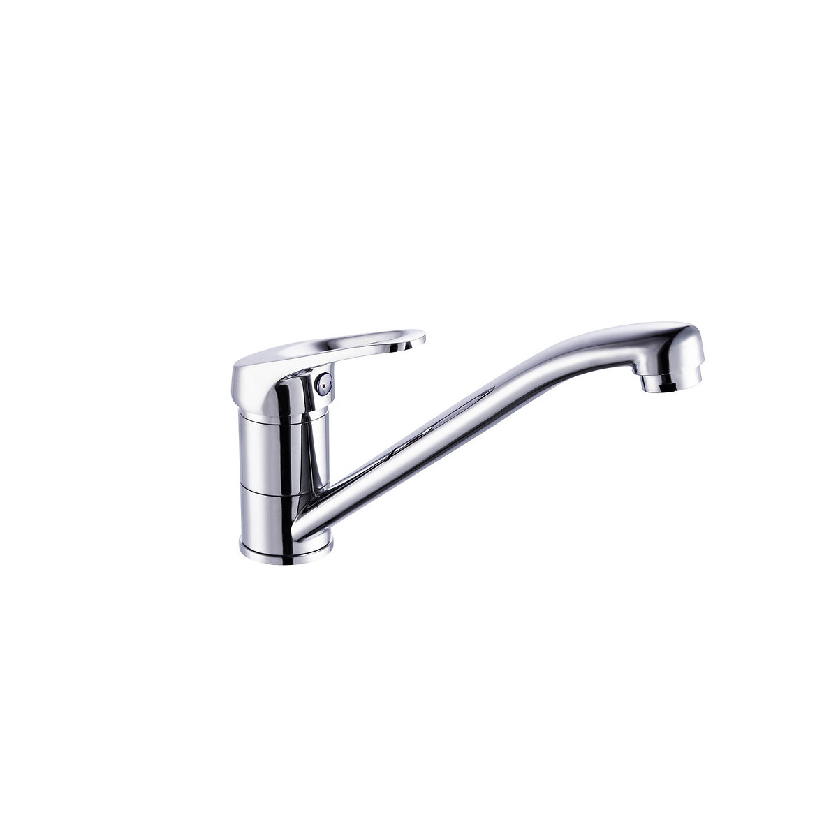 Mitigeur évier chromé hauteur 145mm Corps diamètre 42,5mm à la base Cartouche de 35mm à limiteur de débit Manette métal ajourée Bec tube mobile Alimentation lyres tressées inox 37cm Kit de fixationSpécifications techniques