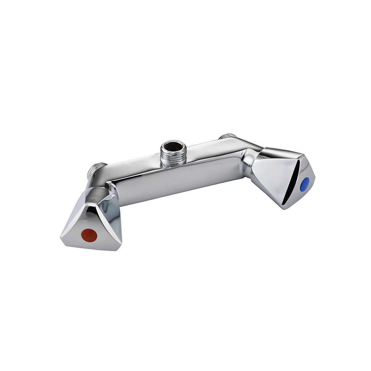 Ce mélangeur mural sera l'accessoire incontournable pour vous garantir un fonctionnement efficace et sécurisé de votre douche. Il se met en place très facilement et rapidement sur un mur par vissage. La qualité de sa structure permet de raccorder une douchette aisément. La solidité de cette pièce assure une fixation solide et stable pour une sécurité optimale au quotidien. L'entraxe de 110 mm permet à ce mélangeur d'avoir un grand espacement entre les deux croisillons pour une utilisation confortable et sans gêne. Ses deux croisillons disposent d'une bonne prise en main pour une rotation fluide et un changement de température rapide. Son design sobre et passe-partout fera de ce mélangeur un ajout idéal pour votre salle de bain et pourra s'y intégrer parfaitement Sa géométrie lisse et espacée rend l'entretien facile et permet ainsi de le garder propre et brillant en toute simplicité. Type : mâle 1/2 Entraxe : 110 mm Type de bec : rapportéSpécifications techniques