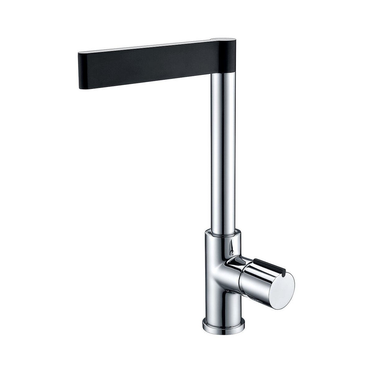 - Style moderne Mécanisme : cartouche céramique Ø 35 mm Poignée : métal Corps : laiton Revêtement : couleur noir + chromé Bec : tube mobile Embase : Ø 50 mm Flexibles de raccordement : inox F 3/8 Ecrou de serrage rapide à la main