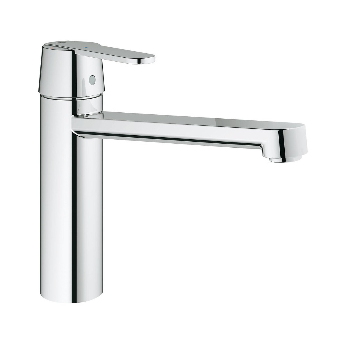 Mitigeur monocommande Get GROHE pour évier avec monotrou sur plage. Caractéristiques Bec Medium La technologie de cartouches GROHE SilkMove® pour une manipulation en douceur Cartouche en céramique 35 mm C3 avec butée éco 1/2 débit et ouverture dans l’axe central en eau froide Facile à nettoyer grâce au revêtement chromé GROHE StarLight® Limiteur de débit ajustable Bec tube pivotant Zone de rotation 140° Mousseur Installation rapide grâce à GROHE QuickFix® Flexibles de raccordement souples, sertis d’usine