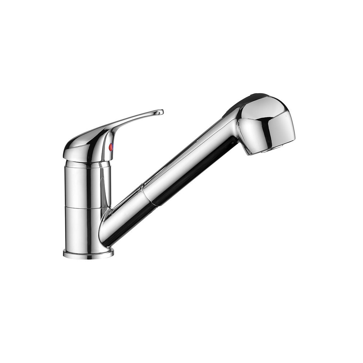 Données techniques : - Cartouche céramique diamètre 40 mm - Économie d'eau : aérateur réducteur de débit - Économie d’eau : butée éco-stop - Poignée : métal - Corps : laiton - Bec : douchette extractible 2 jets (pluie, aéré) - Flexibles de raccordement : inox F 3/8 - Longueur 50 cm