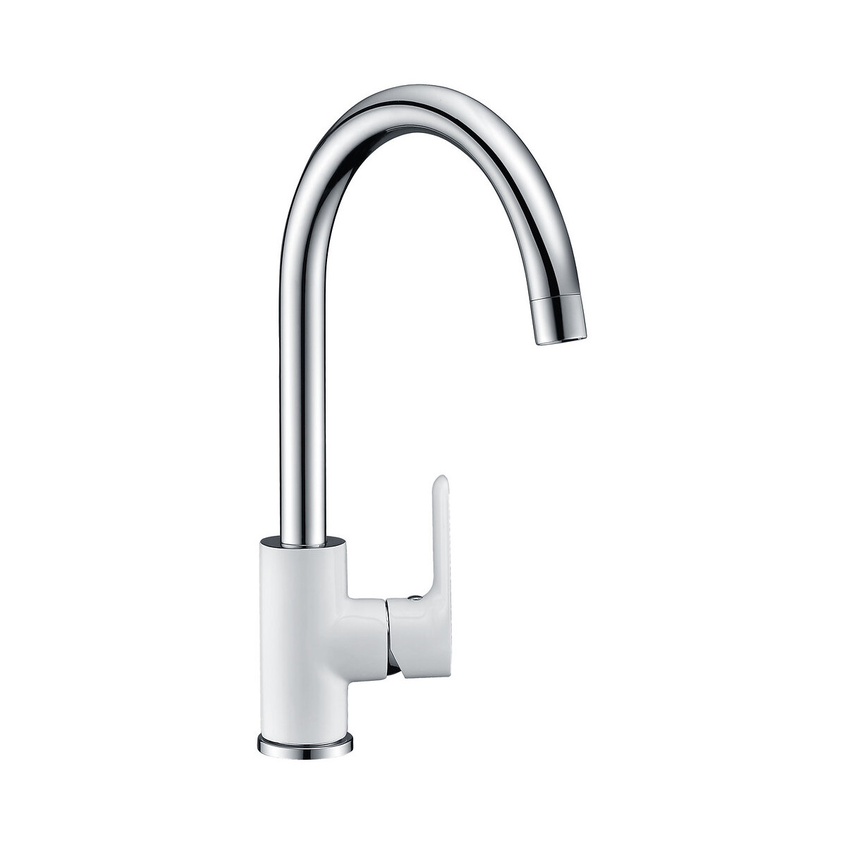 Mécanisme : cartouche céramique diamètre 35 mm Economie d’eau : aérateur réducteur de débit Poignée : métal chromé sur le dessus et blanche brillante sur le dessous Corps : laiton Bec : tube mobile Embase : diamètre 50 mm Flexibles de raccordement : inox F 3/8 (12x17).Spécifications techniques