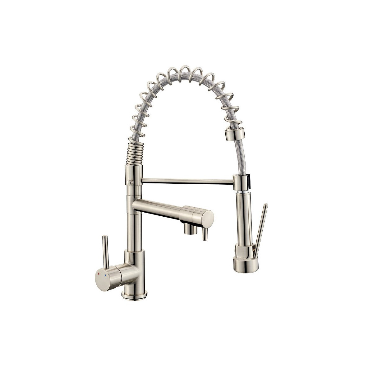 Mitigeur d'évier avec douchette IWAN inox - Cartouche ceramique dia. 40mm - corps laiton - aérateur réducteur de debit neoperl - flexible de raccordement long.50cm - douchette 1 jet - finition inoxSpécifications techniques