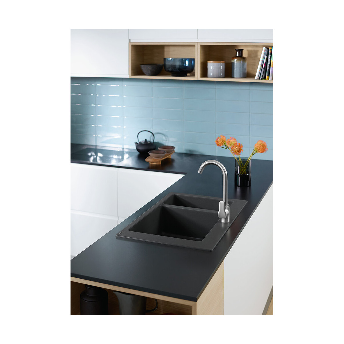 Robinet de cuisine Hansgrohe MySport L design col de cygne élégant, grande hauteur sous bec. Rotation du bec de 360°, pour un grand confort d'utilisation dans la cuisine, et une grande liberté de mouvement. Cartouche brevetée Hansgrohe pour une sélection facile et précise de la température : 2 vitesses de débits, une butée à mi-parcours permet de limiter le débit, et faire réaliser des économies d'eau et d'énergie. Finition Chrome pour un maximum de brillance. Universel, robinet d'évier compatible avec tous les systèmes de production d'eau chaude. Garantie totale de 5 ans pour ce robinet d'évier de cuisine Hansgrohe MySport L Chrome.Spécifications techniques