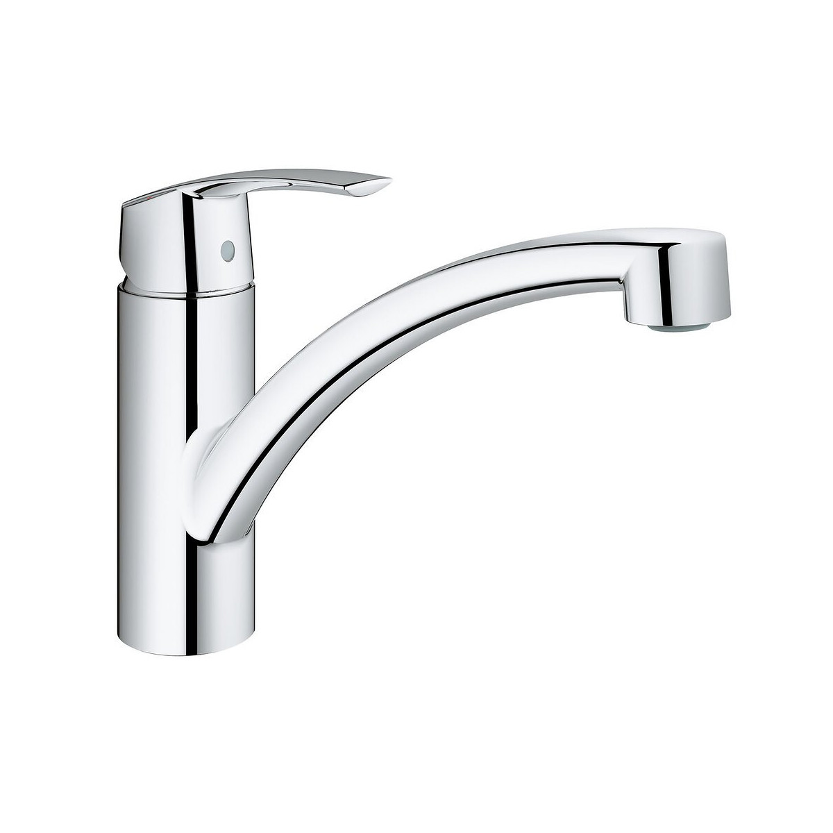 Caractéristiques : Mitigeur monocommande évier Monotrou sur plage Bec bas Conduit d?eau séparé - sans plomb ni nickel GROHE SilkMove® Cartouche en céramique 35 mm C3 avec butée éco 1/2 débit et ouverture dans l?axe central en eau froide GROHE StarLight® chrome éclatant et durable Bec moulé pivotant Zone de rotation 140° Mousseur avec fente, pour un remplacement sans outil Flexibles de raccordement souples, sertis d?usine Système de montage rapide GROHE QuickFix® installation rapideSpécifications techniques