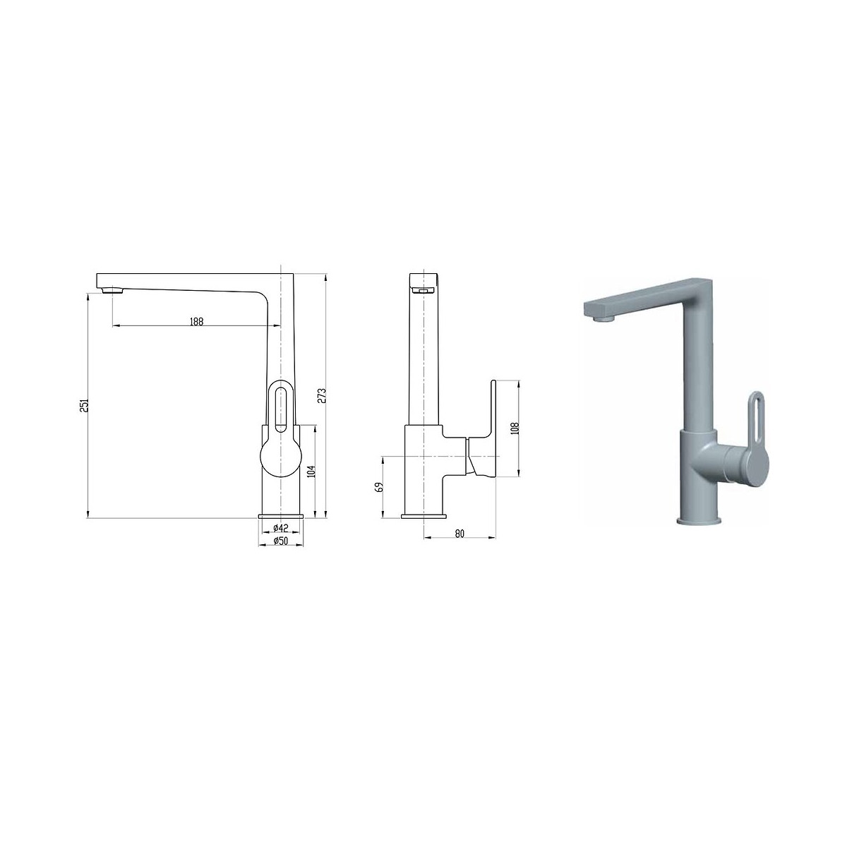 Ce mitigeur est, avec son bec haut et mobile, très fonctionnel. Il est équipe de fonctionnalités vous permettant de réaliser des économies d'eau. De plus, il répond aux normes ACS et est garanti 5 ans. DESIGN: - Mitigeur évier cuisine. - Bec orientable - Finition chromé. - Corps rond. QUALITE: - Corps en laiton chromé. - Poignée en métal. - Cartouche céramique (limiteur de débit) 35 mm de diamètre. - Limiteur débit : butée économique afin de réduire le débit de 50% et une économie de 25% de la consommation d’eau grâce à la réduction du débit maxi. - Aérateur anticalcaire : limite la production de calcaire. - Aérateur économie d’eau : permet de réaliser des économies sur votre consommation d'eau grâce à un mélange optimal de l’air et de l’eau. NORMES: - Certification ACS : Accréditation de Conformité Sanitaire. GARANTIE: - Corps garanti 5 ans. - Pièces d'usure (poignée, cartouche, flexibles...) garanties 1 an. Dimensions - Hauteur totale : 27,30 cm - Hauteur sous bec : 25,10 cm - Largeur entre la sortie d'eau et l'axe du corps du robinet : 18,80 cm - Diamètre embase : 50,00mm. Vérifiez que la longueur du bec est compatible avec votre évier (voir dessin technique) Conseil d'utilisation et d'installation - Avant de procéder au montage, nous vous conseillons de purger soigneusement les tuyauteries d'eau chaude et d'eau froide pour éviter que les saletés et résidus puissent compromettre le bon fonctionnement de la robinetterie. - Après avoir fermé l'alimentation d'eau principale, démonter l'ancienne robinetterie. - Nettoyer soigneusement le filetage des tubes d'alimentation d'eau principale. - Installer le mitigeur de cuisine dans un trou de 35 mm dans un évier ou plan de travail. Conseils d'entretien Pour garder votre robinet le plus longtemps possible, l’idéal est de le nettoyer tous les jours avec un chiffon humide non abrasif ou une microfibre, terminer en essuyant avec une microfibre ou un chiffon sec. Ne jamais utiliser de solvants, d'éponges métalliques, d’eau de javel, d'acides, de détergents puissants, de produits nettoyants chimiques agressifs ou de solutions de nettoyage à base de solvants sur le produit.Spécifications techniques