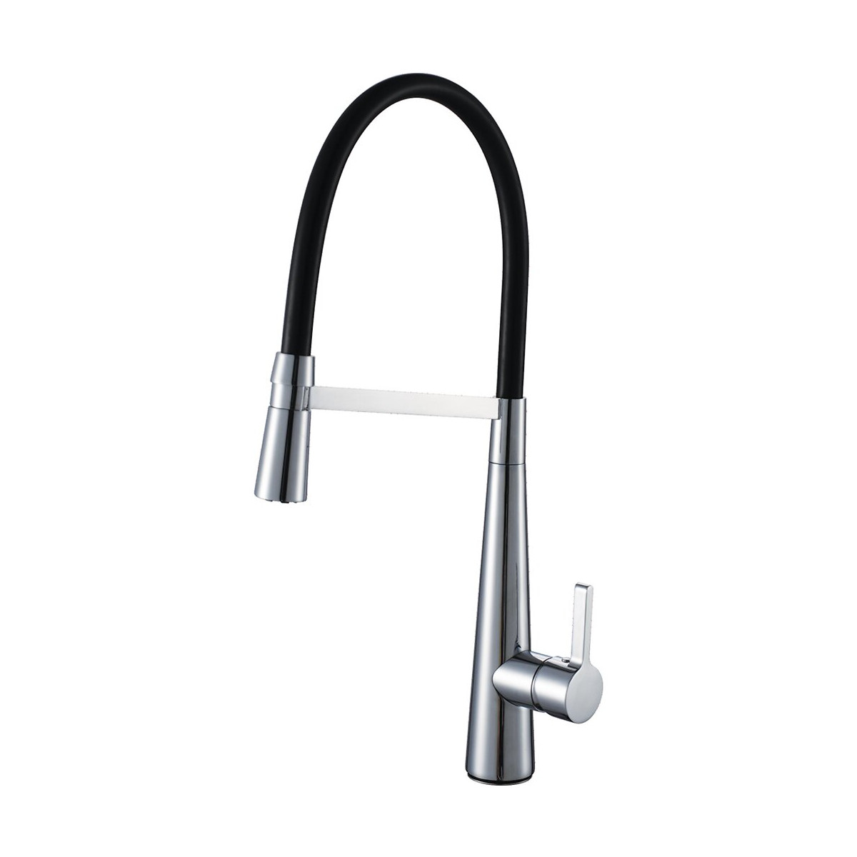 High Silicon Mitigeur Évier Chromé À Douchette Avec Flexible Silicone Noir
