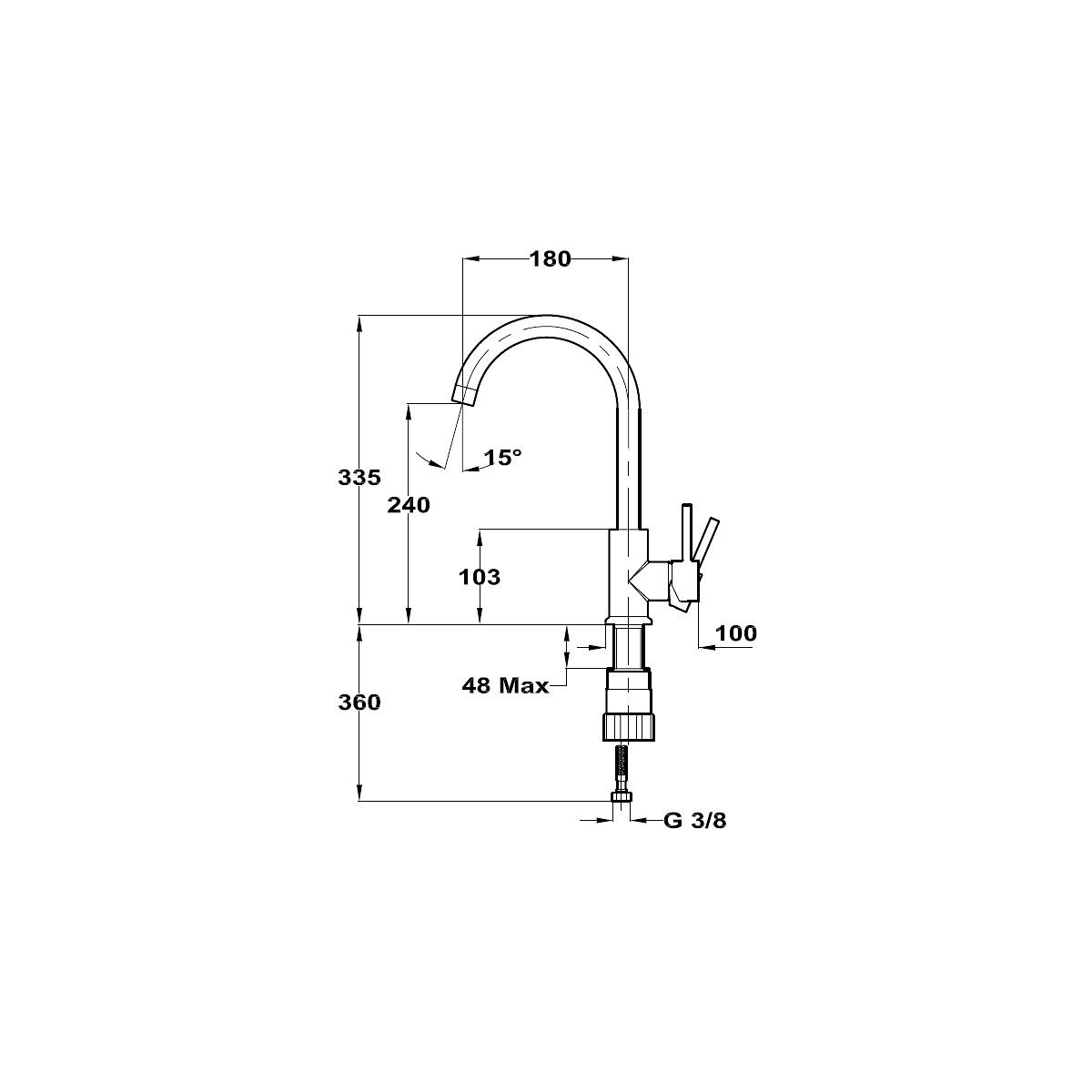 Le mitigeur Kiwo noir donnera une touche moderne à votre cuisine. Fait de laiton, sa couleur noire et sa forme design en feront la star de la cuisine. DESIGN: - Mitigeur évier cuisine. - Bec orientable - Finition noire. - Corps rond. Dimensions - Hauteur totale : 33,50 cm - Hauteur sous bec : 24,00 cm - Largeur entre la sortie d'eau et l'axe du corps du robinet : 18,00 cm - Diamètre embase : 50,00 mm. Vérifiez que la longueur du bec est compatible avec votre évier (voir dessin technique) QUALITÉ: - Corps en laiton noir. - Poignée en métal. - Cartouche céramique 35 mm de diamètre. - Aérateur anticalcaire : limite la production de calcaire. - Système ESSEFIX : fixation facile et sans outil. NORMES: - Certification ACS : Accréditation de Conformité Sanitaire. GARANTIE: - Corps garanti 5 ans. - Pièces d'usure (poignée, cartouche, flexibles...) garanties 1 an. PLANETEBAIN.COM VOUS PRÉCONISE: Avant de procéder au montage, nous vous conseillons de purger soigneusement les tuyauteries d'eau chaude et d'eau froide pour éviter que saletés et résidus puissent compromettre la marche de la robinetterie. Nettoyer soigneusement le filetage des tubes d'alimentation d'eau principale. Le mitigeur est utilisable pour des pressions d'alimentation en eau de 1 bar (min) à 5 bars (max). En cas de pression supérieure, nous vous conseillons d'installer un limiteur de pression. Attention : ne pas utiliser de produit abrasif ou tout autre produit acide. Nettoyer votre mitigeur avec de l'eau savonneuse, puis rincer avec une éponge ou un chiffon doux. En cas de calcaire : nettoyer avec de l'eau vinaigrée (vinaigre blanc).