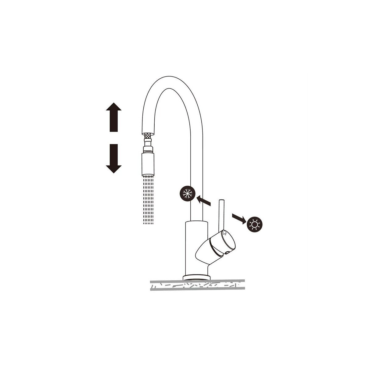 Le mitigeur à douchette Arkal a une ligne très élancé, avec sa finition façon inox et sa douchette extractible. il est aussi économe avec un limiteur de débit très pratique, et est garanti 5 ans. DESIGN: - Mitigeur évier cuisine. - Bec mobile avec douchette extractible. - Finition façon inox. - Corps rond. QUALITE: - Corps en laiton façon inox. - Poignée en métal. - Cartouche céramique (limiteur de débit) 35 mm de diamètre. - Limiteur débit : butée économique afin de réduire le débit de 50% et une économie de 25% de la consommation d'eau grâce à la réduction du débit maxi. - Aérateur anticalcaire : limite la production de calcaire. NORMES: - Certification ACS : Accréditation de Conformité Sanitaire. GARANTIE: - Corps garanti 5 ans. - Pièces d'usure (poignée, cartouche, flexibles...) garanties 1 an. Dimensions - Hauteur totale : 39,6 cm - Hauteur sous bec : 22,2 cm - Largeur entre la sortie d'eau et l'axe du corps du robinet : 19,30 cm - Diamètre embase : 54 mm. Vérifiez que la longueur du bec est compatible avec votre évier (voir dessin technique) Conseil d'utilisation et d'installation - Avant de procéder au montage, nous vous conseillons de purger soigneusement les tuyauteries d'eau chaude et d'eau froide pour éviter que les saletés et résidus puissent compromettre le bon fonctionnement de la robinetterie. - Après avoir fermé l'alimentation d'eau principale, démonter l'ancienne robinetterie. - Nettoyer soigneusement le filetage des tubes d'alimentation d'eau principale. - Installer le mitigeur de cuisine dans un trou de 35 mm dans un évier ou plan de travail. Conseils d'entretien Pour garder votre robinet le plus longtemps possible, l’idéal est de le nettoyer tous les jours avec un chiffon humide non abrasif ou une microfibre, terminer en essuyant avec une microfibre ou un chiffon sec. Ne jamais utiliser de solvants, d'éponges métalliques, d’eau de javel, d'acides, de détergents puissants, de produits nettoyants chimiques agressifs ou de solutions de nettoyage à base de solvants sur le produit.Spécifications techniques