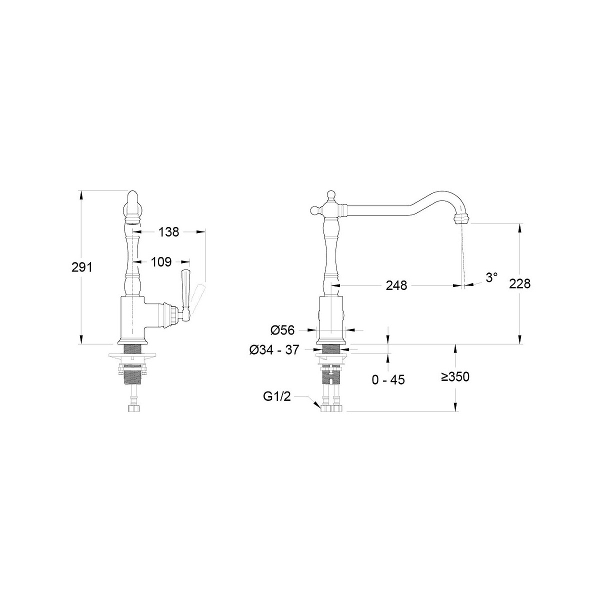 Points forts Le charme de l’ancien : Des lignes classiques, un choix de matériaux nobles, style rétro assumé, détails ornementaux soignés Confort d’usage : Belle hauteur sous aérateur et grande profondeur de bec permettant un excellent confort Surface résistante à la corrosion et aux rayures Finition Inox brossée : Adaptée à l usage en cuisine. Parfaitement raccord avec les éviers en inox Economies d eau et d’énergie Caractéristiques du mitigeur de cuisine Cleo Jacob Delafon Type d’installation : 1 trou Type : mitigeur Débit (L/mn sous 3 bars) : 8L/mn Raccord : Avec flexibles d’alimentation Installation simplifiée : Grâce à un kit de fixation avec queue filetée Eco conso : Economie d’eau Garantie mécanisme : 5 ans Garantie finition inox bossé : 25 ans Garantie finition chrome : 10 ans Hauteur du mitigeur : 291 mm Hauteur sous bec : 228 mm Saillie du bec : 248 mm 2 coloris Ref E24317-CP : chrome Ref E24317-VS : Inox brossé