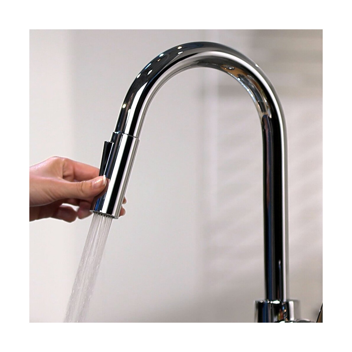 Ergonomie et design, ce sont les deux qualités fondamentales de ce mitigeur Hansgrohe. Ce qui vous séduira ? Sa finition chromée facile d entretien, ses 2 jets, sa douchette extractible et son bec orientable. Points forts Douchette extractible sur environ 50 cm Bouton sur le bec : passer rapidement d un jet à l autre Jet laminaire : remplissage rapide Jet de la douchette : nettoyage en douceur Finition chromée facile à nettoyer, de qualité et de brillance irréprochables Pièces détachées disponibles jusqu à 15 après l arret de la gamme Caractéristiques techniques Cartouche céramique de qualité pour réglage du débit et de la température optimisé Bec est orientable à 110 ou 150 Embout en silicone du bec (Quickclean) Boite comprend le mitigeur, le raccordement flexible, le set de fixation, une clé de service et les instructions de montage Montage polyvalent et compatible avec un chauffe-eau instantané Longeur : 261 mm Largeur : 122 mm Hauteur : 406 mm Lauteur sous bec : 230 mm Référence : 31815000