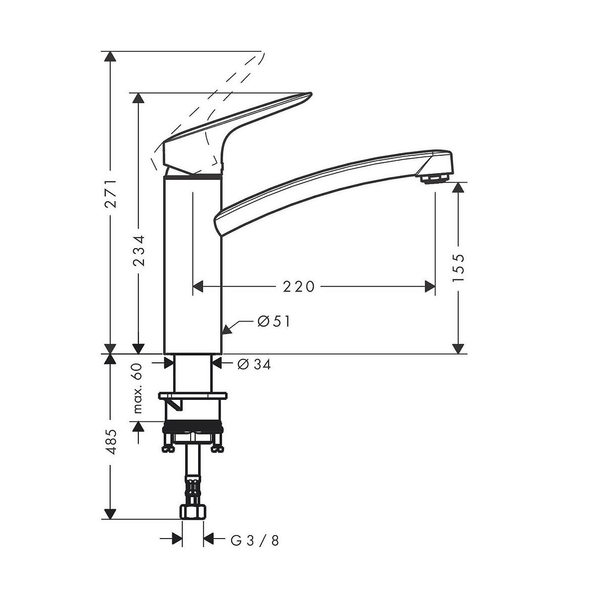 Points forts Bec orientable à 360 Mécanisme de haute précision Matériaux de haute qualité Revêtement chrome résistant Garantie : 5 ans Caractéristiques techniques du robinet de cuisine Hansgrohe Logis M31 160 Type d installation : mitigeur monotrou Finition : chrome Technologie AirPower : plus de volume en mélangeant air et eau Bec orientable à 360 Jet normal Débit maximal sous 3 bars de pression: 12 l/min Cartouche céramique Raccordement flexible G â…oe Convient au chauffe-eau instantané Raccordement flexibles Set de fixation Hauteur maximale : 271 mm Hauteur du robinet : 234 mm Hauteur sous bec : 155 mm Saillie : 220 mm Référence : 71832000