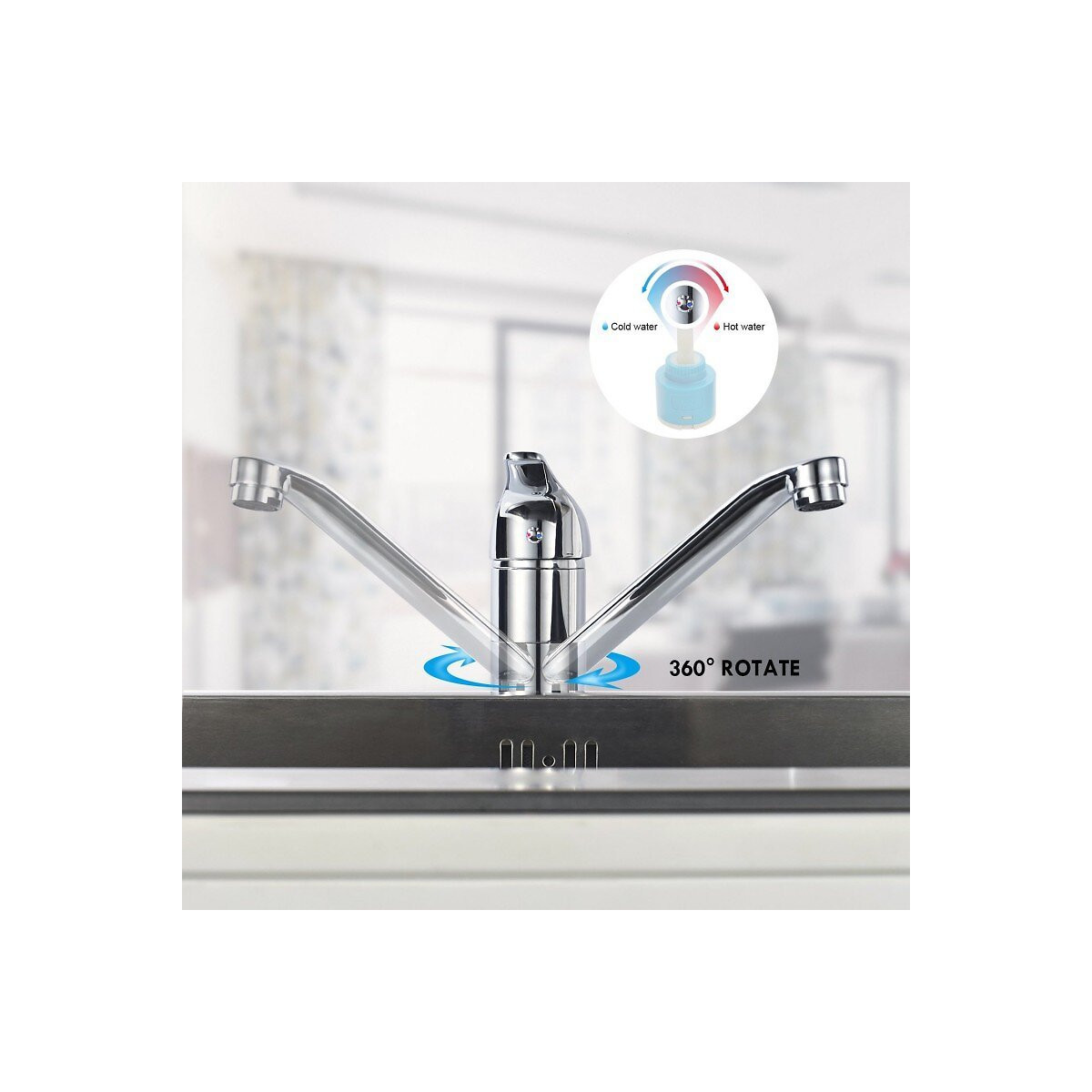 "Mélangeur de cuisine classique "Simple et fonctionnel !" Mélangeur de cuisine avec bec bas et pivotant. Le design est classique, simple et adaptable à tout type de cuisine, notamment grâce à sa finition chromée, qui s'adapte à tous les plans de cuisine. Le robinet est entièrement fabriqué en laiton chromé et est livré complet avec les tuyaux et les raccords, prêt à être installé. Les connexions sont standard