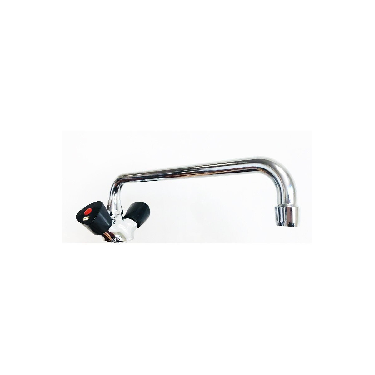 ROBINET DE CUISINE INDUSTRIEL AVEC POIGNÉES NOIRES AVEC BEC EXTRALONG 30 CM Robinet avec poignées noires et long bec pivotant de 30 cm, idéal pour les cuisines professionnelles hauteur : cm 11 projection : cm 30