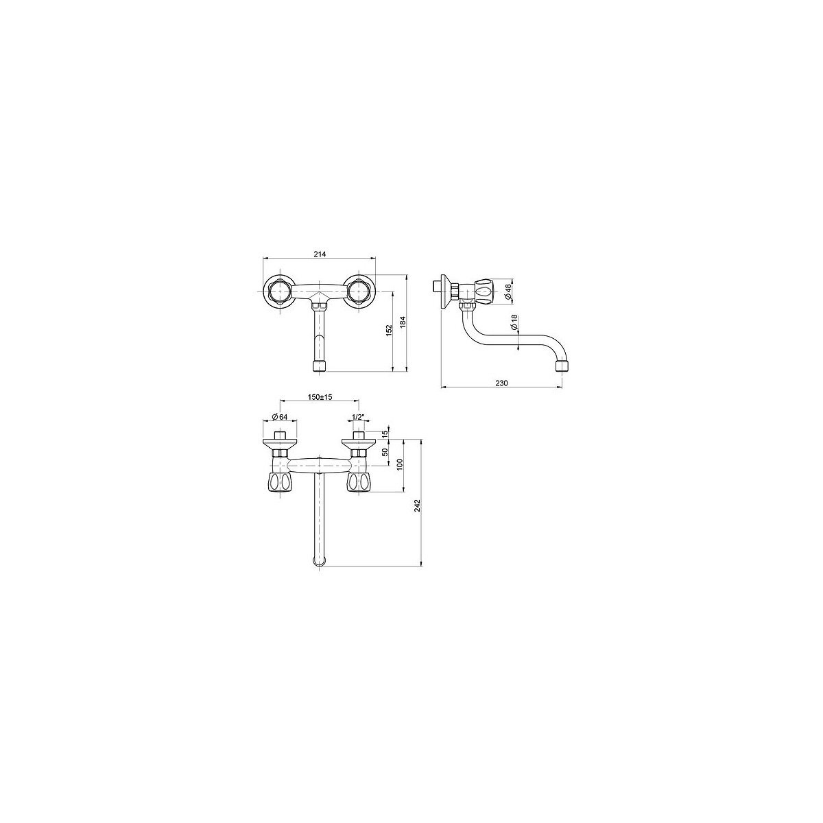Pour évier - Bec orientable Mélangeur mural avec un finition vieux laiton, aérateurs anticalcaire Néoperl cascade grille silicone Enteraxe: 15 cm Longueur bec: 25 cm
