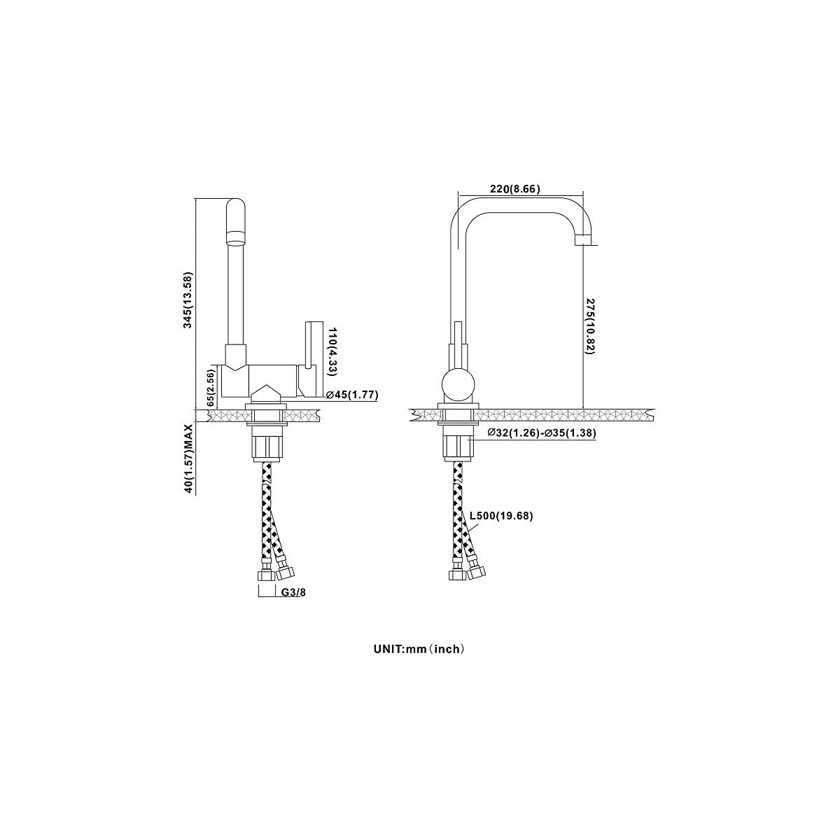 Mélangeur de cuisine : Abaissable, hauteur minimale en position abaissée cm 6,3 Fabriqué en acier inoxydable Finition satinée Complet avec tuyaux et fixations Prêt à être installé