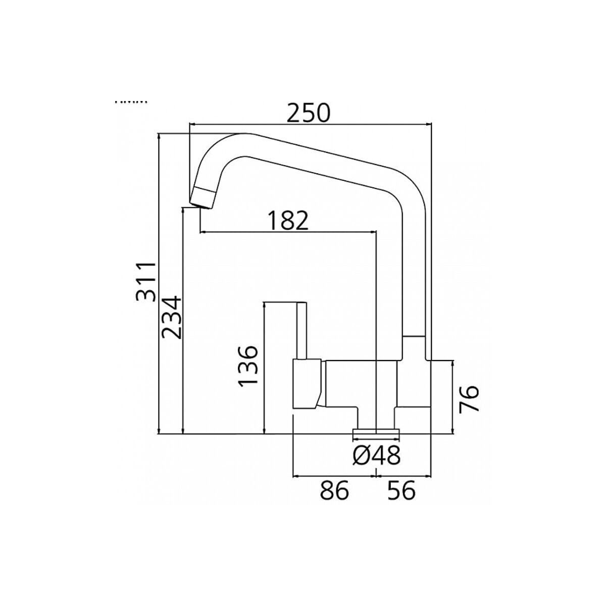 Mélangeur de cuisine : Abaissable, hauteur minimale en position abaissée cm 8 Fabriqué en laiton chromé Finition chrome poli Complet avec tuyaux et fixations Prêt à être installé