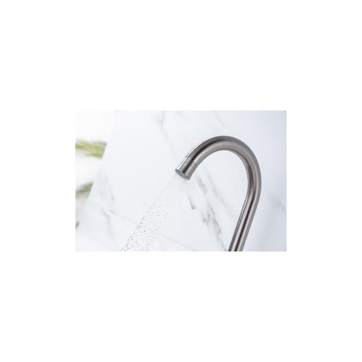 Oceanic Mitigeur-Robinet de cuisine - 2 jets (en eau continue et spray) - Rotatif : 360° - Matiere : en laiton et alliage de zinc - Finition : Nickel brossé - Hauteur totale : 302 mm - Diametre du corps : 45 mm - Cartouche a disques céramique de 40 mm de diametre - 2 flexibles de raccordement fournis