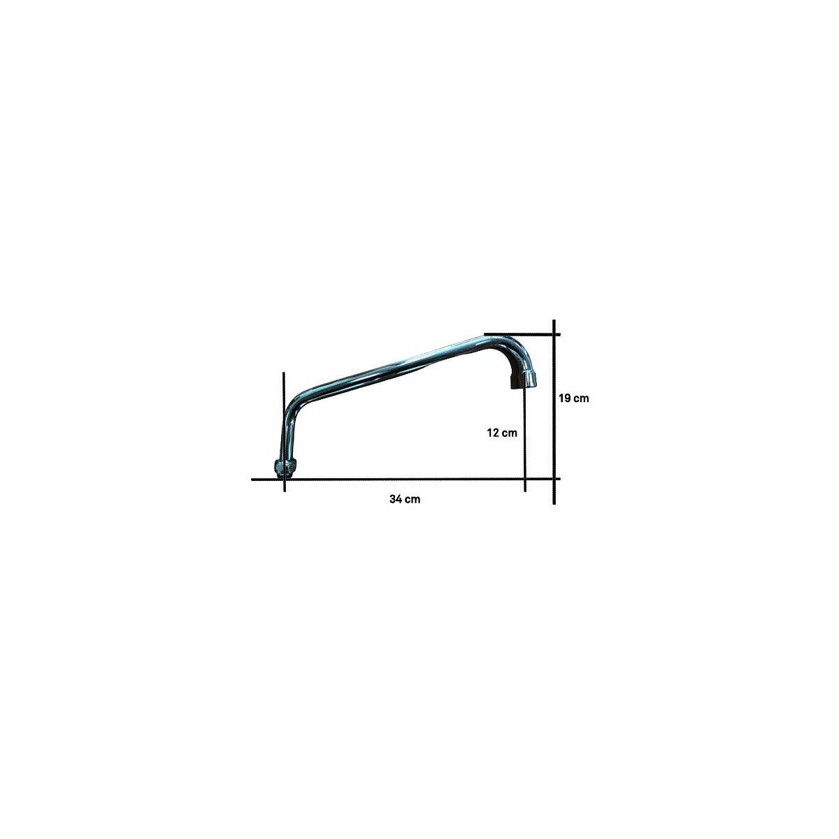 Bec inversé surélevé Pour les cuisines industrielles Raccordement universel 3/4". Laiton chromé Diamètre du tube 18 mmSpécifications techniques