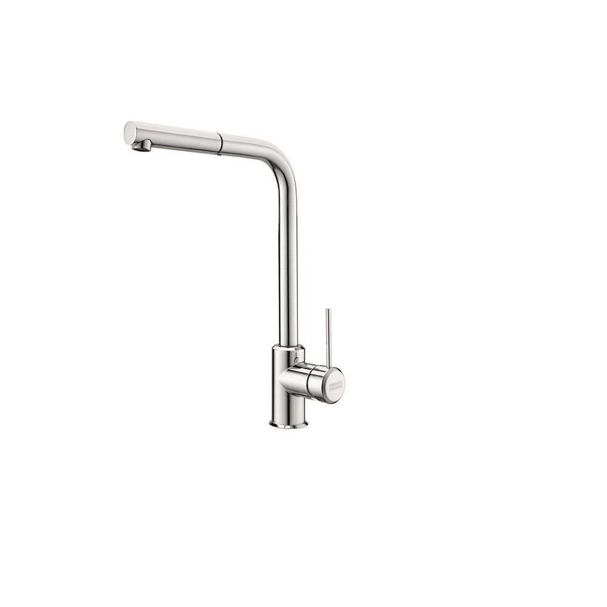850272 - Mitigeur évier Sinus plus 850272 Franke avec bec haut à douchette monojet extractible. Douchette en laiton. Rotation du bec sur 360°. Embase Ø 50 / perçage Ø 35 mm. Système de fixation avec corps fileté. Finition chromée. Hauteur 344 mm. - Type de produit : Mitigeur. Couleur : chromé. Le + produit : Douchette en laiton. Dimensions : H = 34,4 cm. Poids net : 4 Kg.