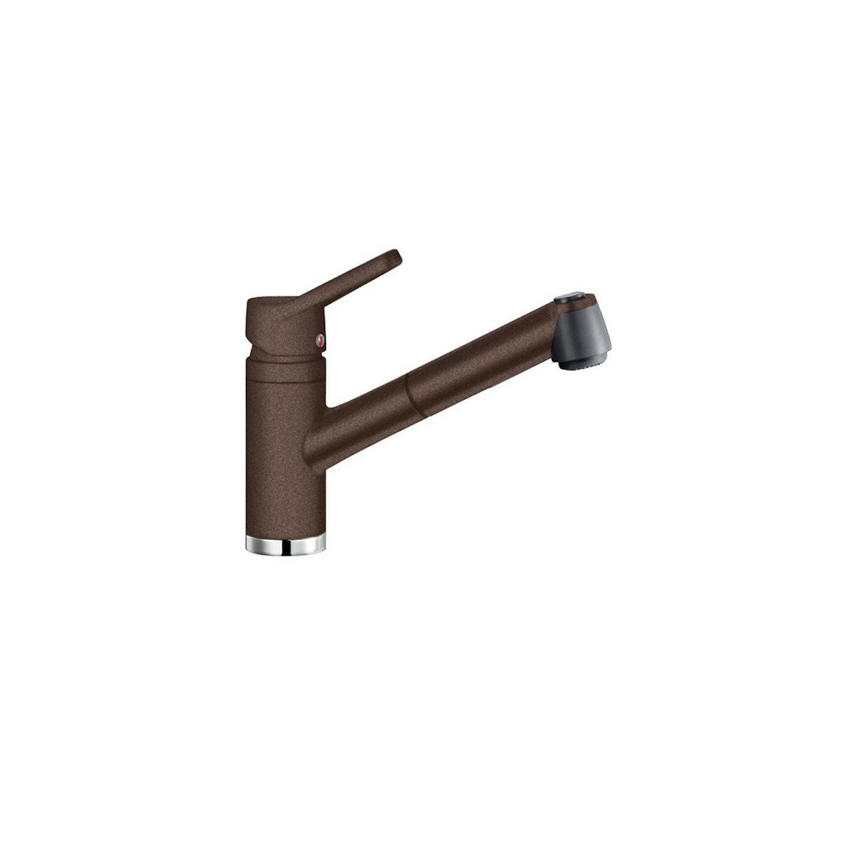 514939 - Mitigeur évier Blancoactis S 514939 avec douchette amovible et jet réglable. - Type de produit : Mitigeur monotrou. Type : Robinet. Gamme : Blancoactis S. Type de robinetterie : Mitigeur de cuisine. Degré d'orientatrion du bec : 140°. Douchette : Oui. Mousseur anti-tartre : Oui. Plaque de renfort : Oui. Divers : Réglable jet-concentré/jet-douche, Douchette amovible. Couleur : Café. Diamètre de perçage (mm) : 35. Accessoires en option : Filtre (réf.128434), Cartouche (réf.128595), Guide pour flexibles métalliques (réf. 511920), Flexible pour douchette nylon (réf.139909). Dimensions du produit (L x l x h en cm) : 19.1 x 5 x 18.7. Poids (kg) : 2.